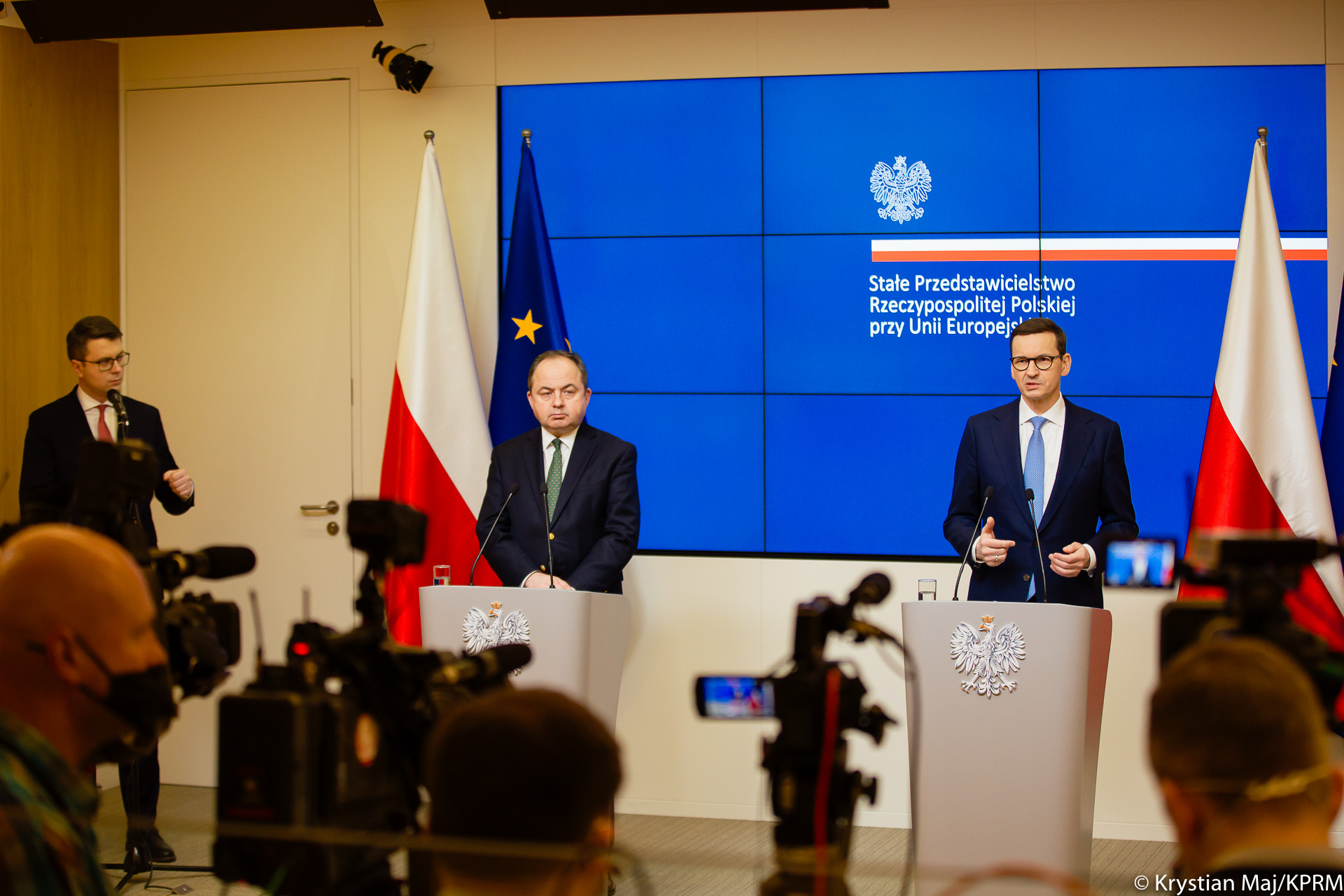 Premier podziękował także za szerokie zaangażowanie Polaków w pomoc humanitarną dla ofiar konfliktu: chcę też bardzo podziękować wszystkim, którzy z sercem na dłoni pokazują czym jest polska gościnność i otwartość dla wszystkich, którzy w tej dramatycznej, trudnej sytuacji dzisiaj się znajdują. Poziom zrozumienia, empatii, wczucia się w tę ciężką sytuację osób za naszą wschodnią granicą, społeczeństwa ukraińskiego, jest wyjątkowy.