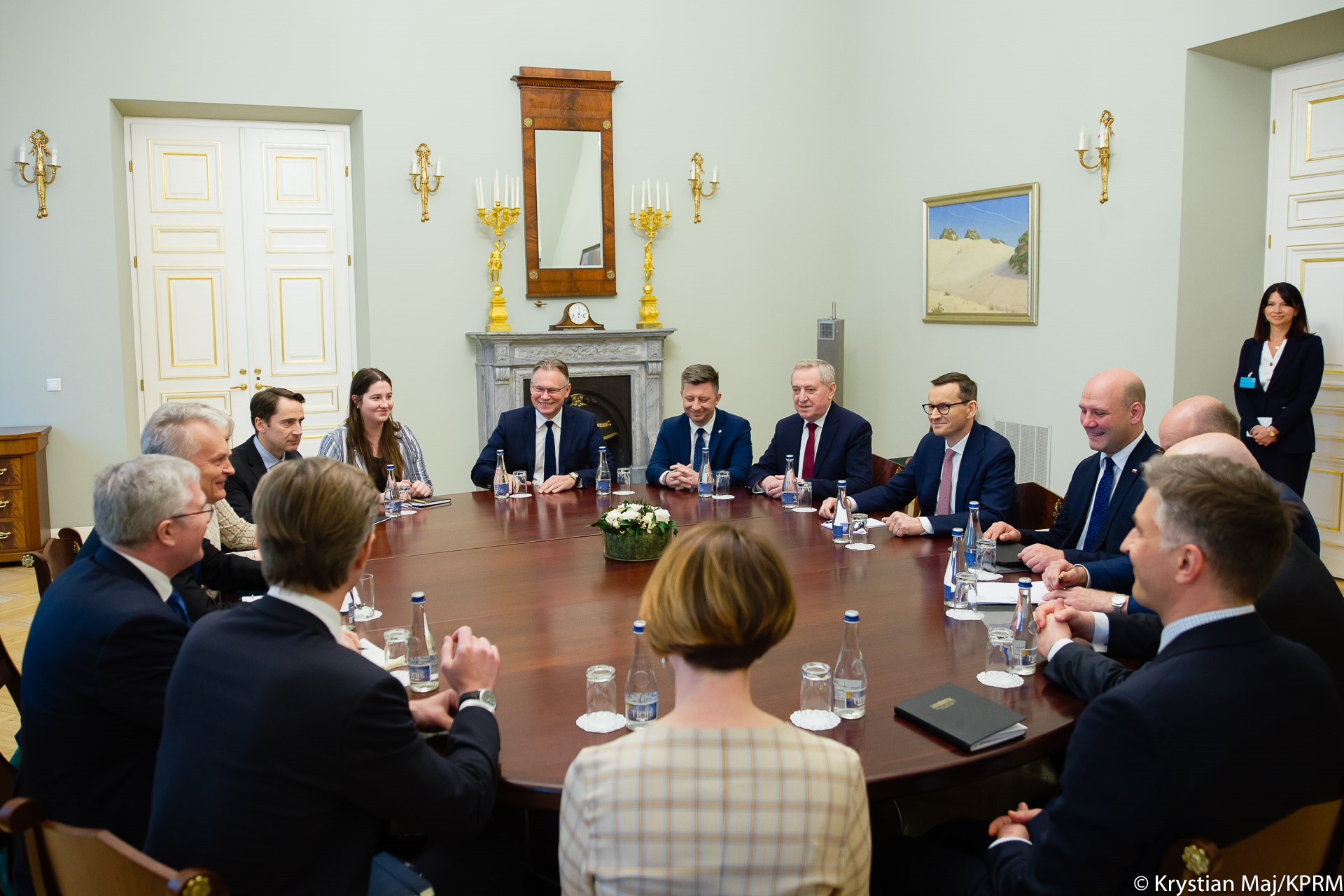 – Rozmawialiśmy także z panią premier o tym, jak wzmocnić naszą politykę obronną i jak reagować wobec zagrożenia militarnego, które dziś manifestuje się na Ukrainie. Wiemy doskonale, że jeśli chcemy pokoju, to musimy przygotowywać się do wojny – podkreślił premier Mateusz Morawiecki.
