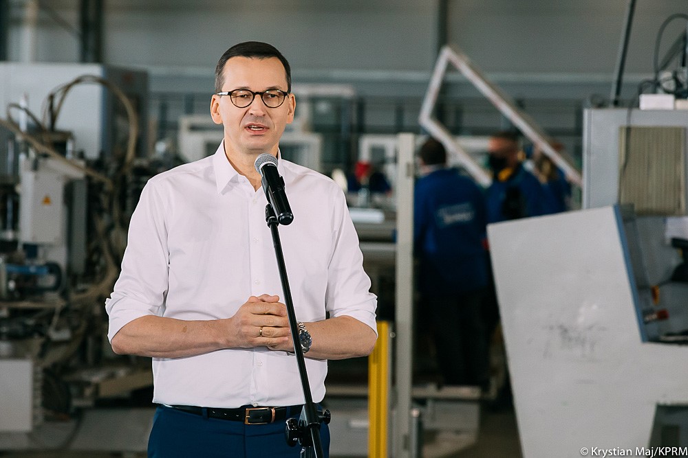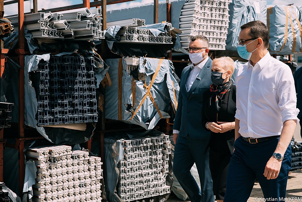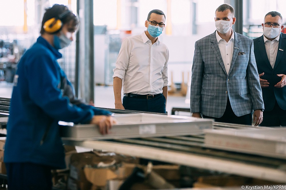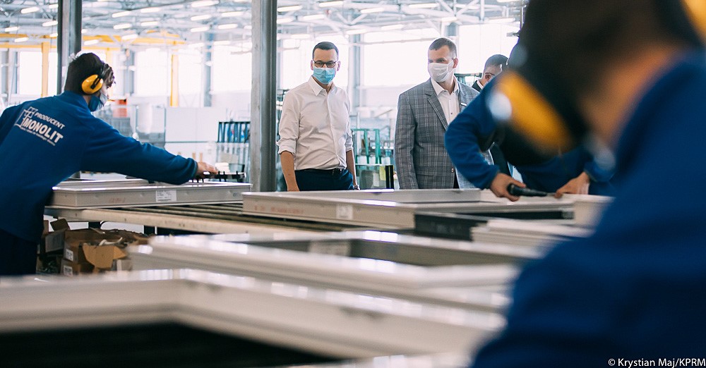 Mateusz Morawiecki w siedzibie firmy Monolit w Zambrowie przedstawił rozwiązania pomocowe dla przedsiębiorców dotkniętych skutkami pandemii.
