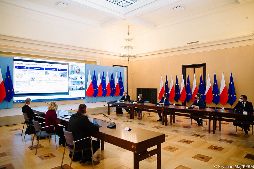 Podczas rozmowy z przedstawicielami firmy Pfizer omówione zostały kwestie związane z właściwym przechowywaniem i dystrybucją szczepionki. Powinna ona być przetrzymywana w bardzo niskiej temperaturze – ok. -70 stopni i musi bezpiecznie dotrzeć do miejsca, gdzie będzie przechowywana. Efektem spotkania było także powołanie wspólnej grupy roboczej z ekspertami Pfizer.