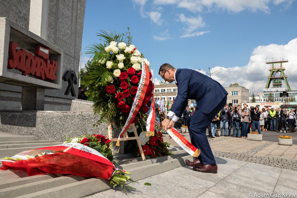 Mateusz Morawiecki złożył także kwiaty pod pomnikiem Porozumienia Jastrzębskiego