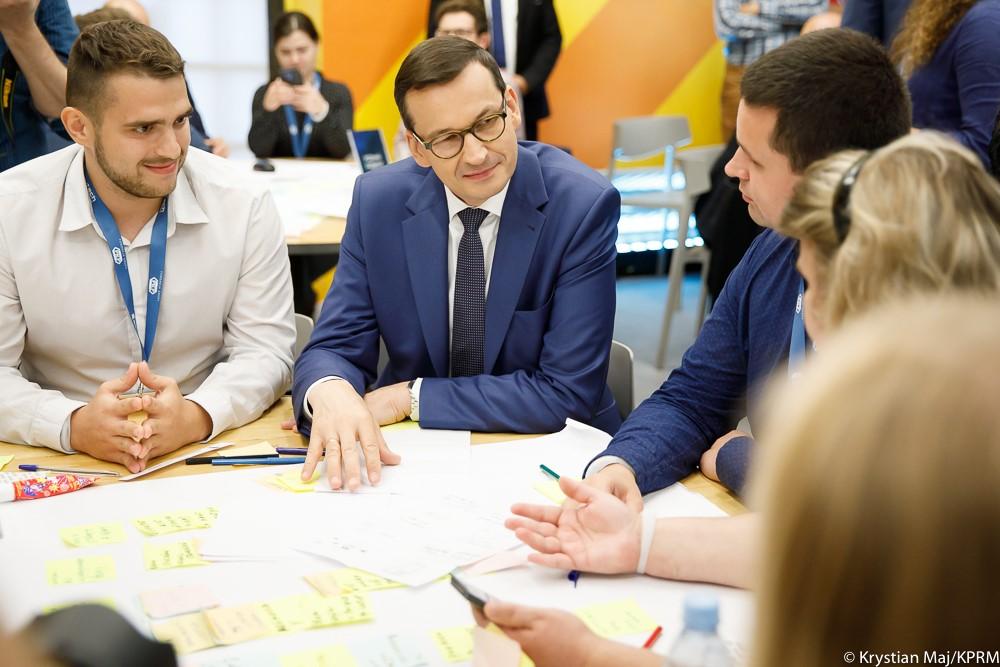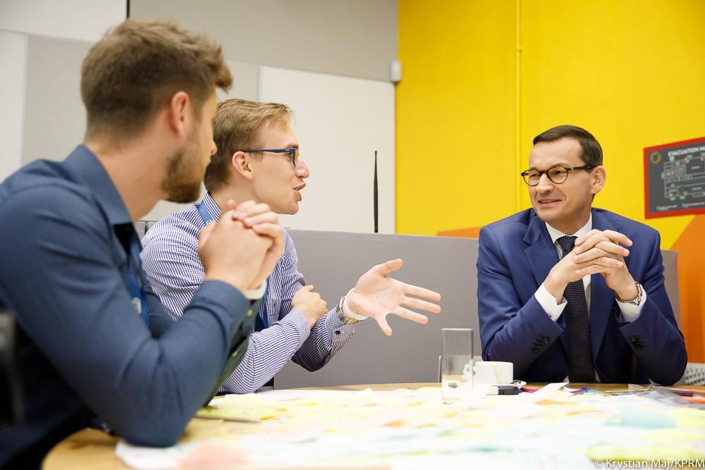 Szef rządu spotkał się z przedsiębiorcami i obywatelami, którzy wzięli udział w pierwszej Obywatelskiej Burzy Mózgów organizowanej w ramach programu GovTech Polska, zainicjowanego przez Mateusza Morawieckiego w 2018 r. To nowy sposób otwarcia państwa na pomysły utalentowanych osób i zaproszenie ich do wspólnego rozwiązywania istotnych społecznie problemów.