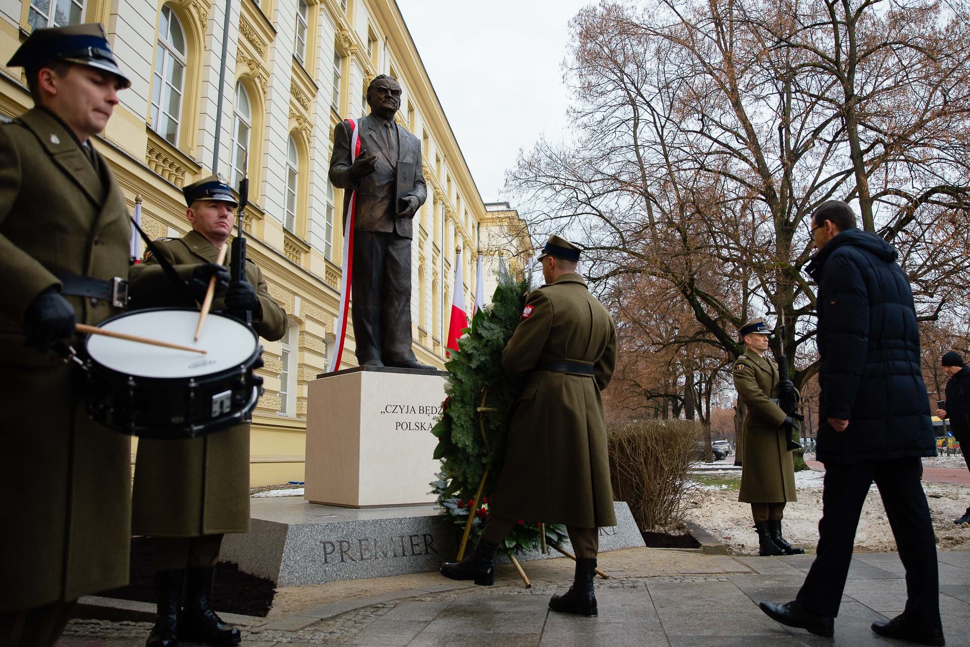 Przed Kancelarią Premiera odbyła się uroczystość odsłonięcia pomnika wybitnego człowieka – premiera Jana Olszewskiego, który stał po stronie silnej, niepodległej Polski. Zawdzięczamy mu dołączenie do NATO i Unii Europejskiej, ponieważ wytyczył odpowiedni szlak. Idee i czyny, którymi kierował się Jan Olszewski są szczególnie istotne w dzisiejszych czasach, kiedy to za naszą wschodnią granicą toczy się wojna. Prezes Rady Ministrów podziękował za wspaniałe życie premiera Jana Olszewskiego, bez którego Polska nie byłaby taka sama.