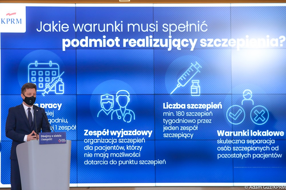 Rząd ogłasza narodowy program szczepień ochronnych przeciwko wirusowi SARS-CoV-2. Jednocześnie zaprasza podmioty wykonujące działalność leczniczą, których zadaniem będzie przeprowadzenie szczepień w populacji. Celem jest punkt szczepień w każdej gminie. W aglomeracjach i dużych miastach przewidziano dodatkowe lokalizacje w szpitalach rezerwowych. Razem minimum 8 000 punktów.