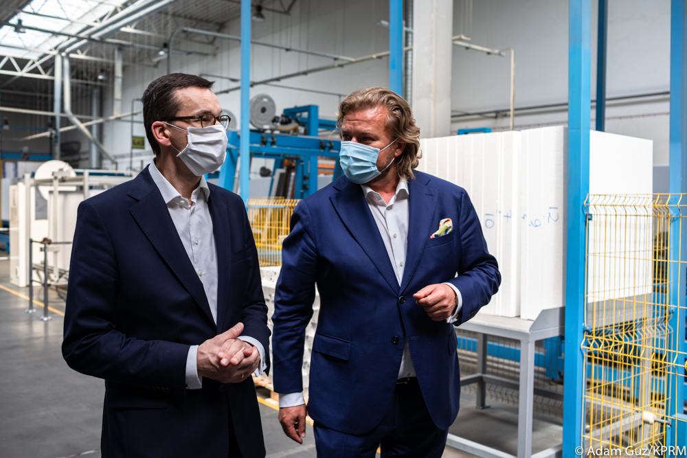 „Jestem w firmie, która korzysta z Tarczy Antykryzysowej i planuje inwestować. Inwestycje pozwalają na ekspansję za granicę” – powiedział Mateusz Morawiecki podczas wizyty w firmie Styropmin – jednej z największych producentów styropianu w Polsce, która korzysta z rządowego wsparcia na ratowanie miejsc pracy. Jak dodał, „o to chodzi w naszym modelu gospodarczym, żeby wspierać przedsiębiorców, którzy mogą podbijać zagraniczne rynki”.