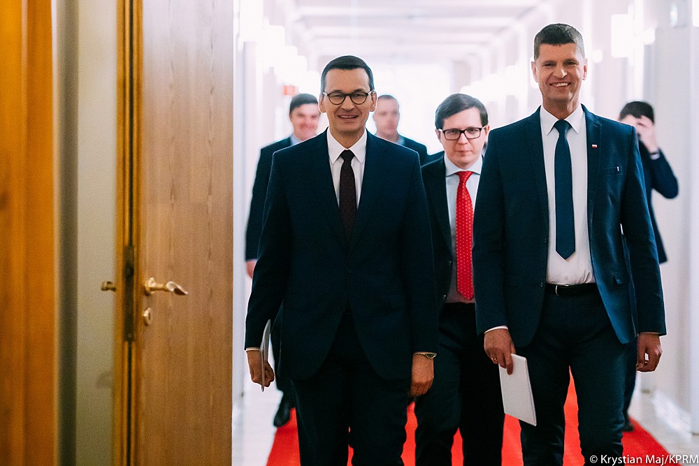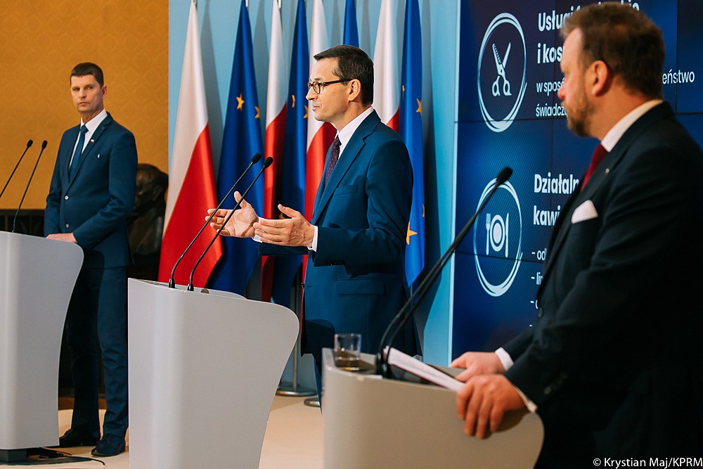„Rząd wspiera przedsiębiorców we wszystkich wysiłkach dążących do pokonania koronawirusa - mówił Mateusz Morawiecki. Jak dodał „powrót do normalności jest bardzo potrzebny i równocześnie możliwy dlatego, że chronimy się przez dystansowanie i stosowanie środków do dezynfekcji”.