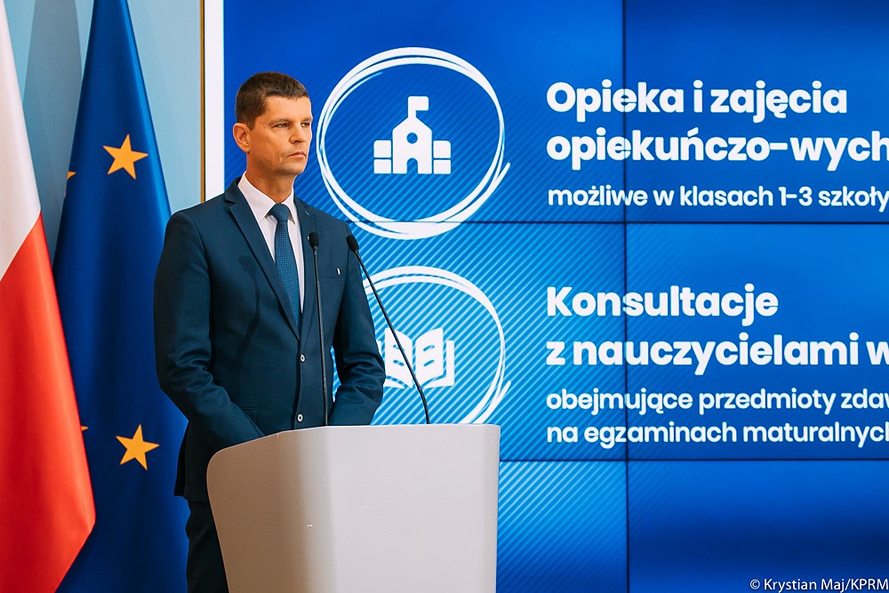 Minister Edukacji Narodowej Dariusz Piontkowski podziękował nauczycielom za dotychczasowe starania i przestawienie się na nauczanie zdalne. Omówił też łagodzenie kolejnych obostrzeń w edukacji. „18 maja będzie możliwe odbycie zajęć praktycznych w szkołach policealnych, gdzie nauka trwa często rok czy półtora roku. Możliwy będzie też powrót zajęć praktycznych w technikach czy szkołach zawodowych”.