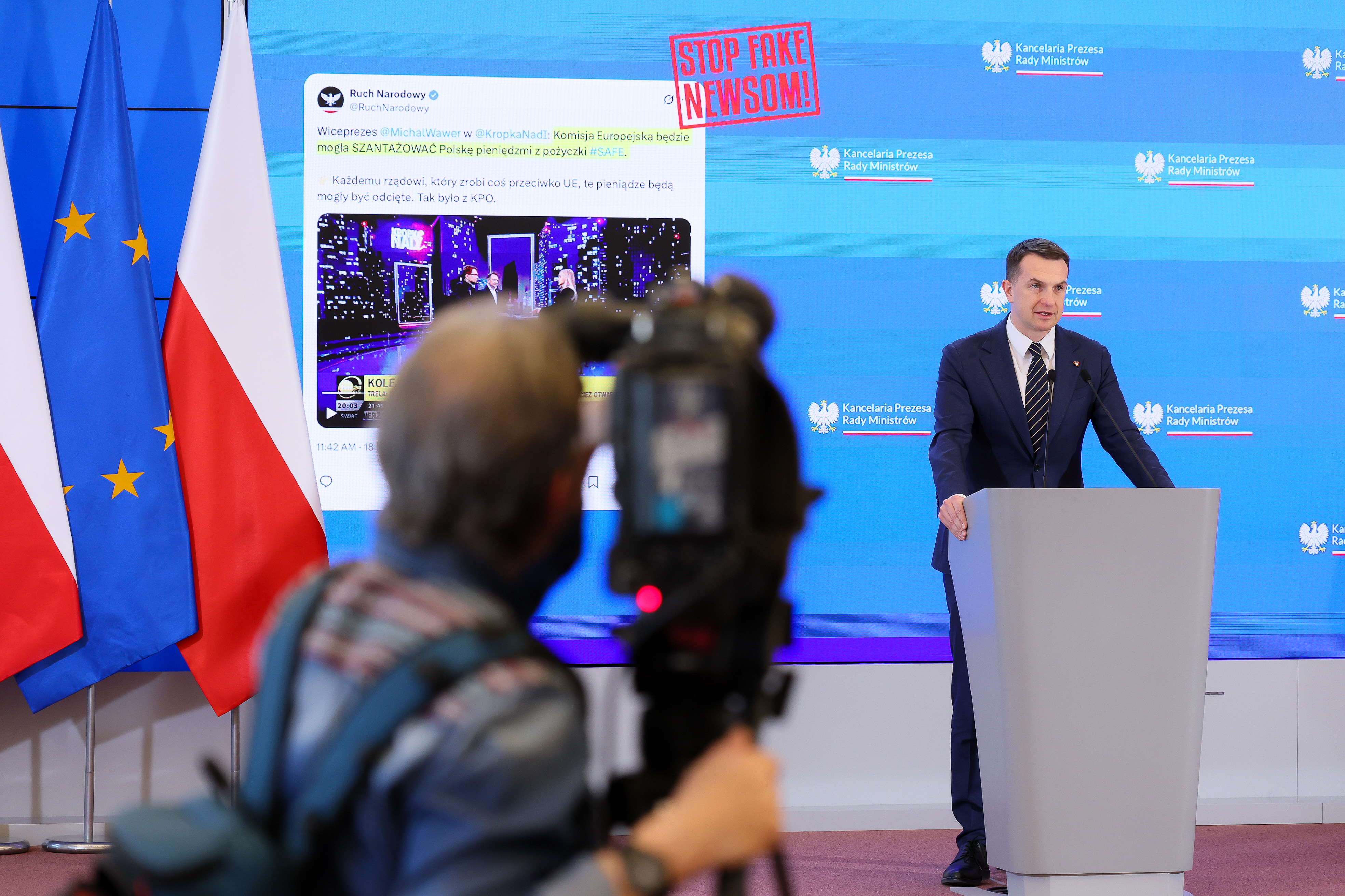 Dezinformację rozpowszechniają także przedstawiciele Konfederacji. Sugerują, że pożyczki w ramach programu SAFE będą narzędziem szantażu Polski przez Komisję Europejską.
