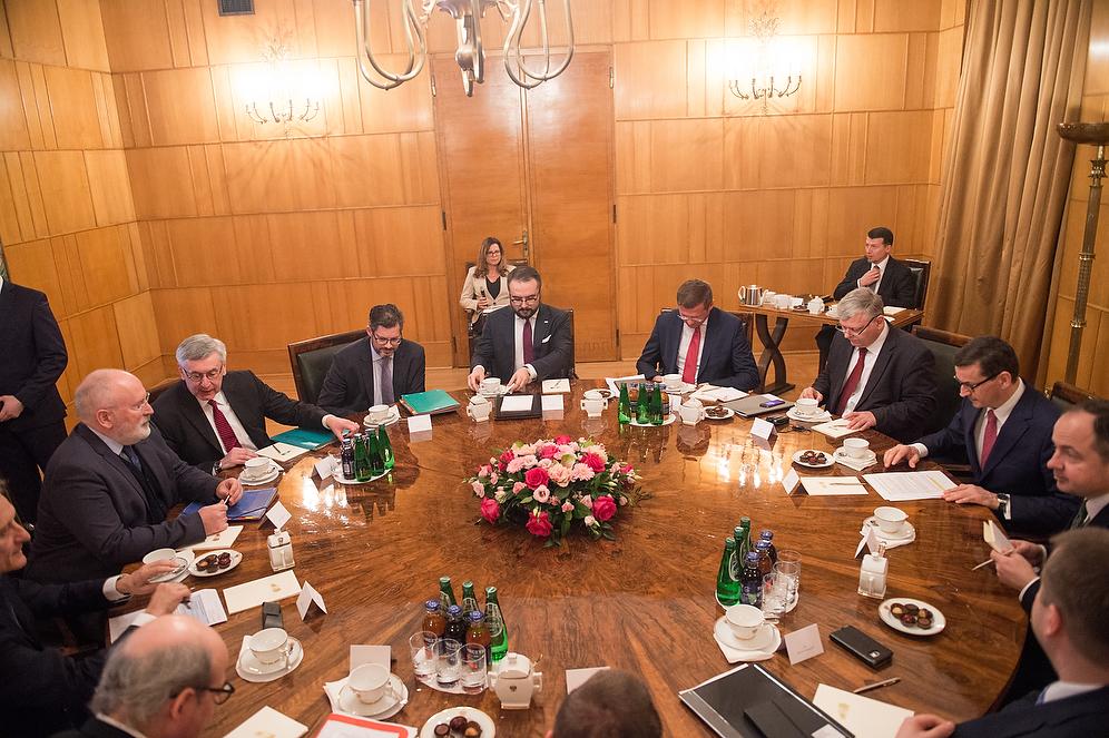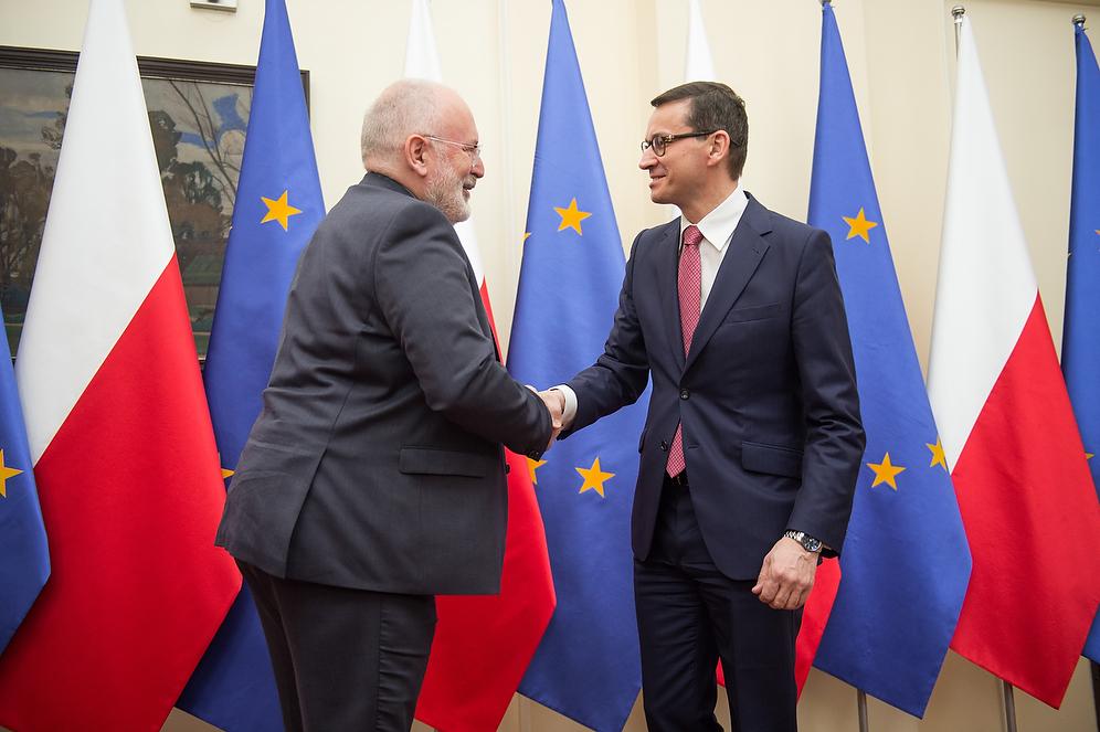 Premier Mateusz Morawiecki spotkał się z wiceprzewodniczącym Komisji Europejskiej Fransem Timmermansem w poniedziałek 9 kwietnia w Warszawie.