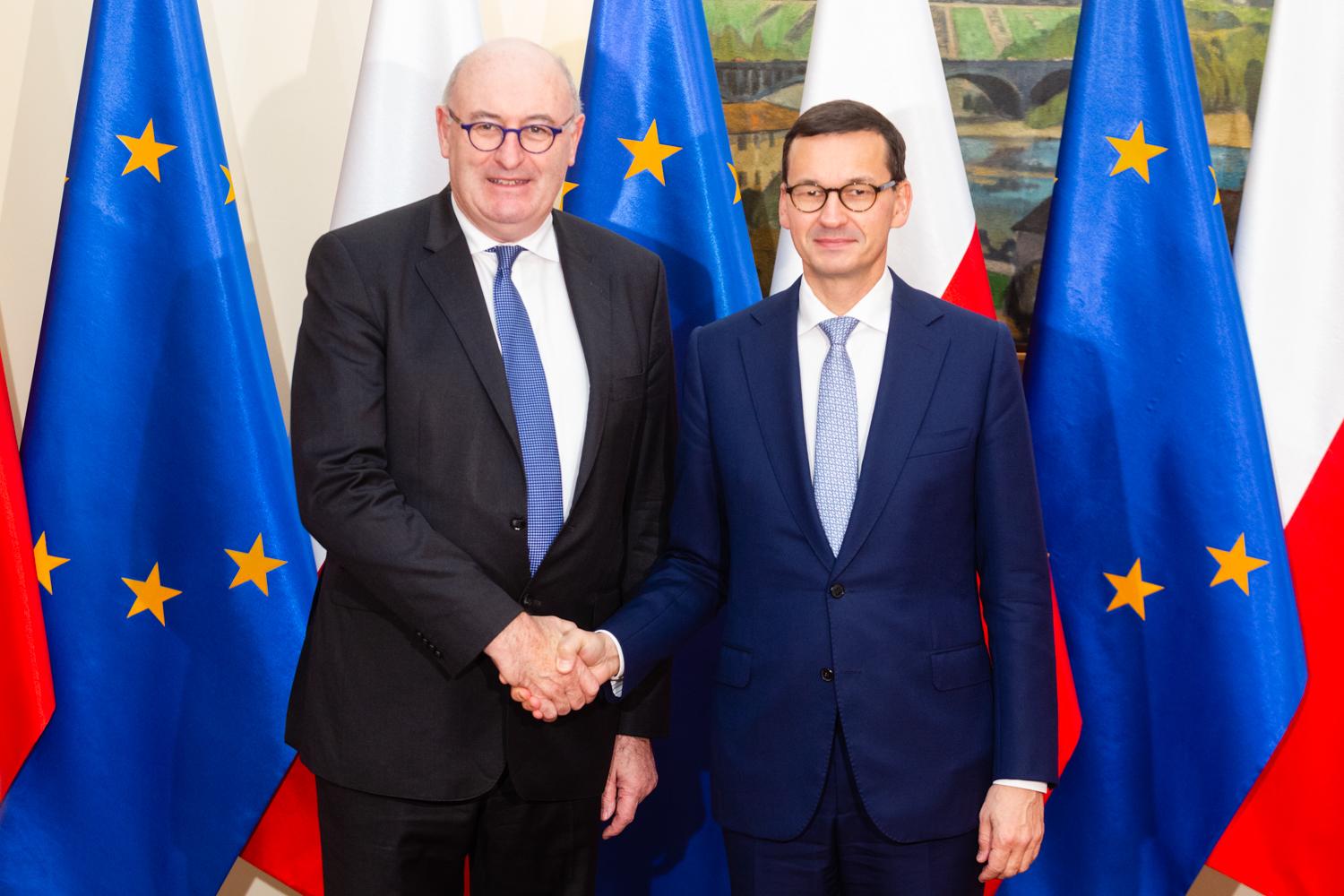 Premier Mateusz Morawiecki spotkał się z komisarzem UE ds. Rolnictwa i Rozwoju Obszarów Wiejskich Philem Hoganem.