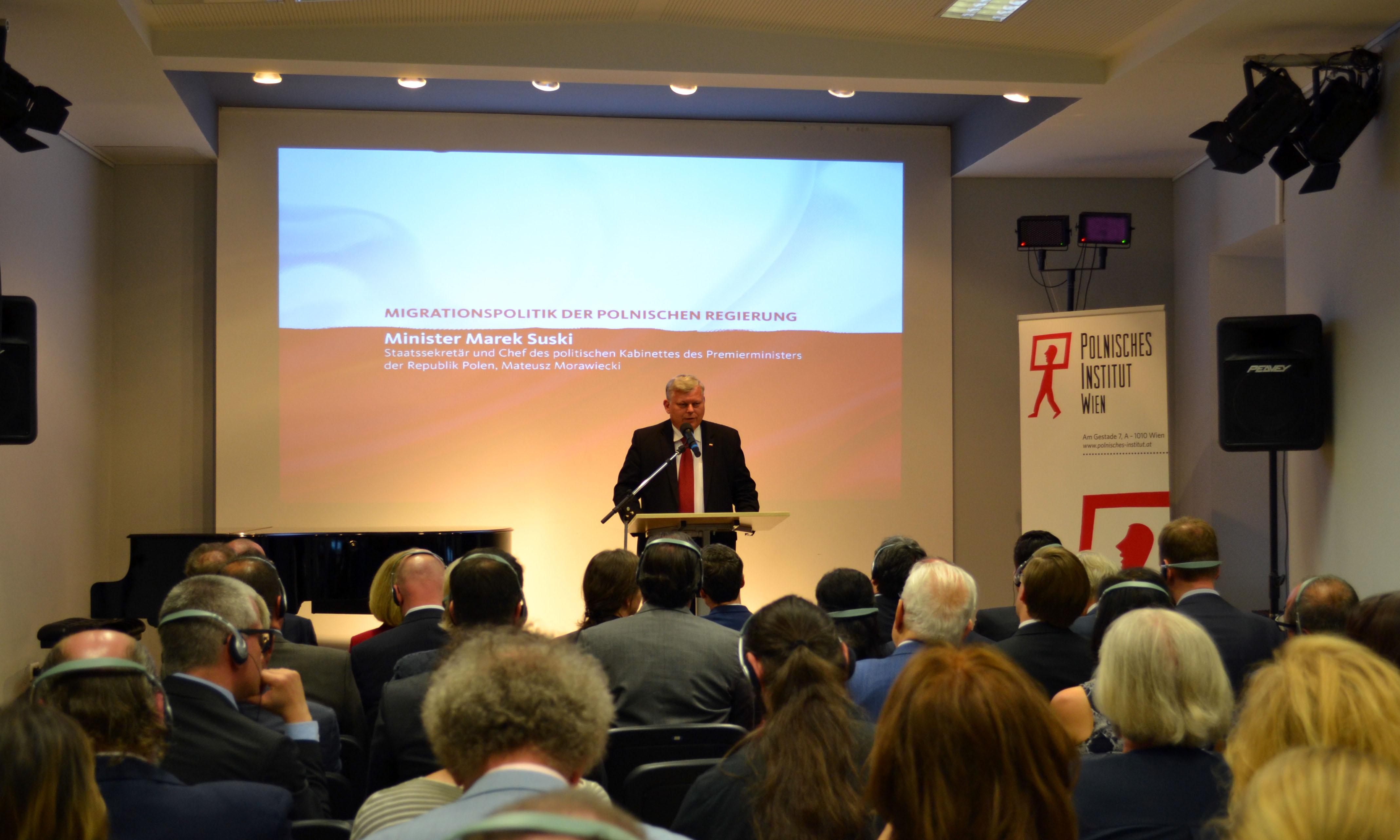 W piątek w Instytucie Polskim w Wiedniu odbyło się spotkanie z ministrem Markiem Suskim, z udziałem korpusu dyplomatycznego i konsularnego, austriackich parlamentarzystów, przedstawicieli mediów oraz miejscowych instytucji. Minister mówił o polityce migracyjnej rządu RP.