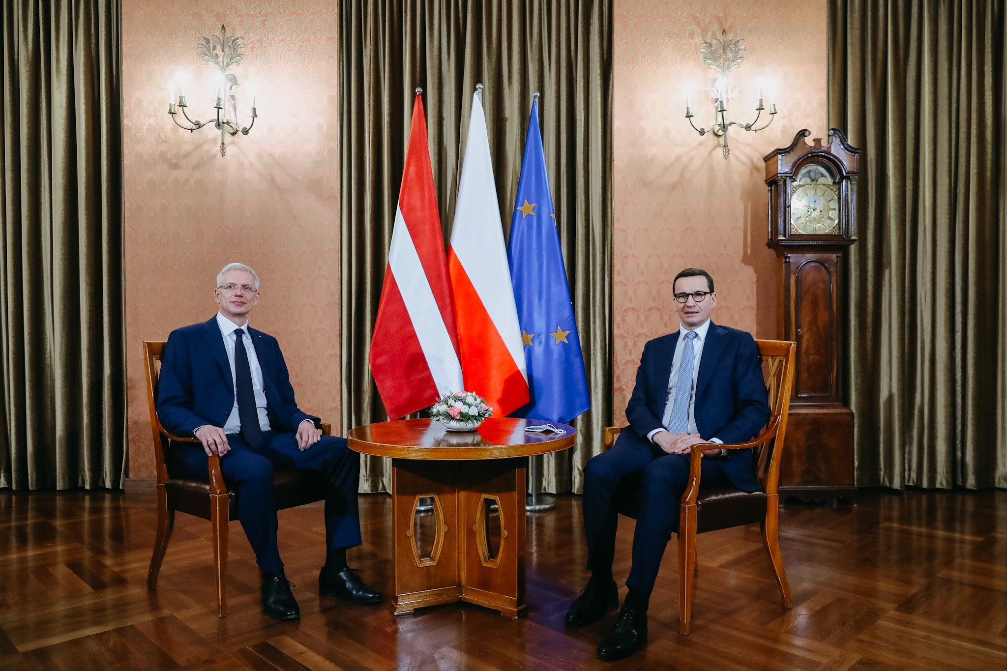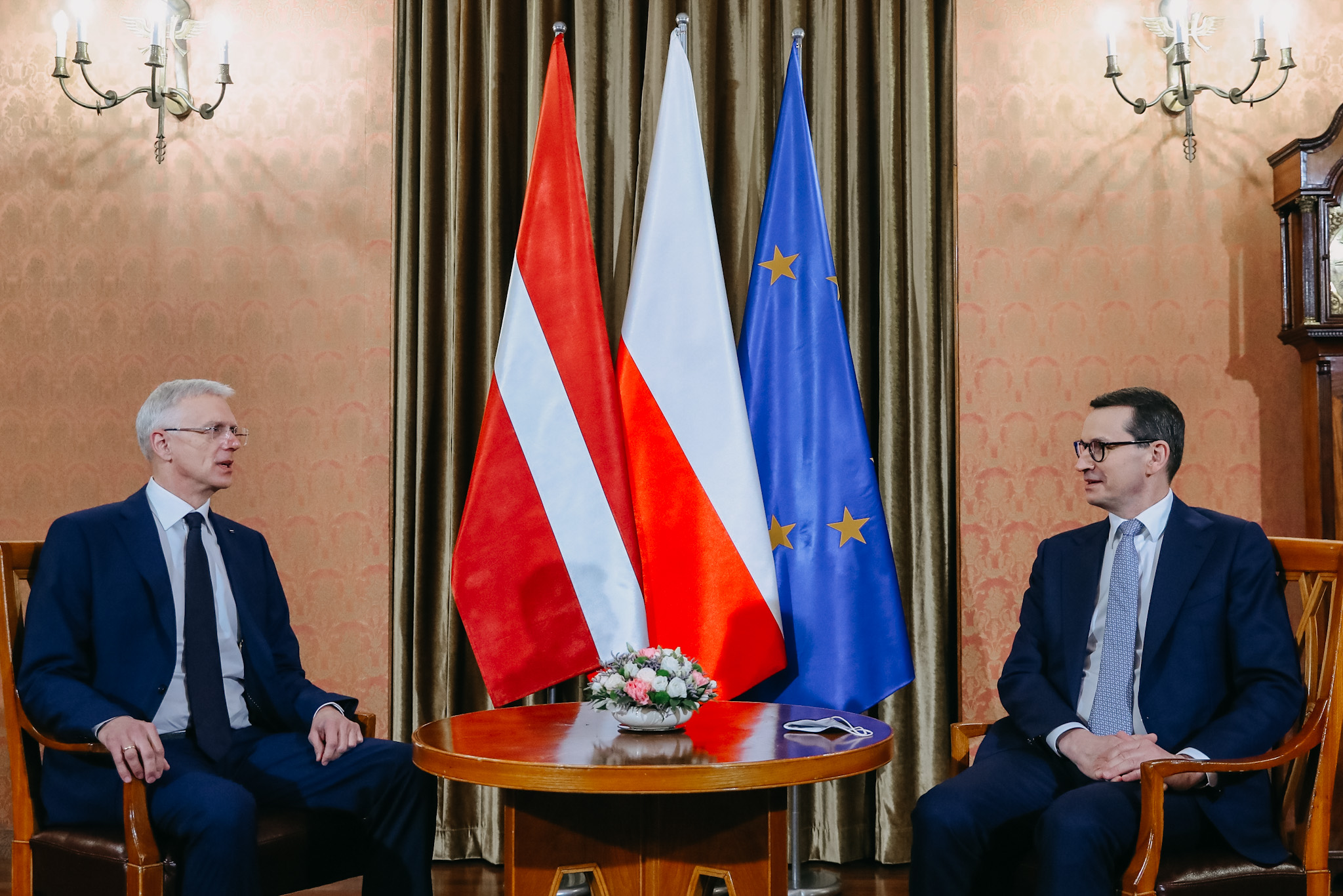 Premier Mateusz Morawiecki podziękował premierowi Łotwy za wizytę i rozmowy. Wskazał, że w ostatnich miesiącach współpraca z Republiką Łotewską jeszcze mocniej zacieśniła się również ze względu na konieczność wspólnej odpowiedzi na hybrydowy atak reżimu białoruskiego na nasze granice.