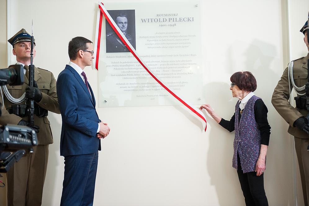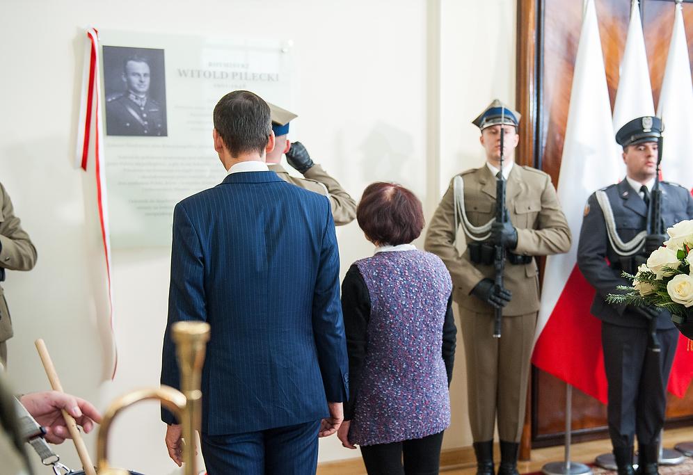 Szef rządu wraz z Zofią Pilecką dokonał odsłonięcia pamiątkowej tablicy rtm. Witolda Pileckiego w sali, która od dziś będzie nosiła jego imię. Następnie dokonano złożenia kwiatów pod tablicą w obecności asysty wojskowej.