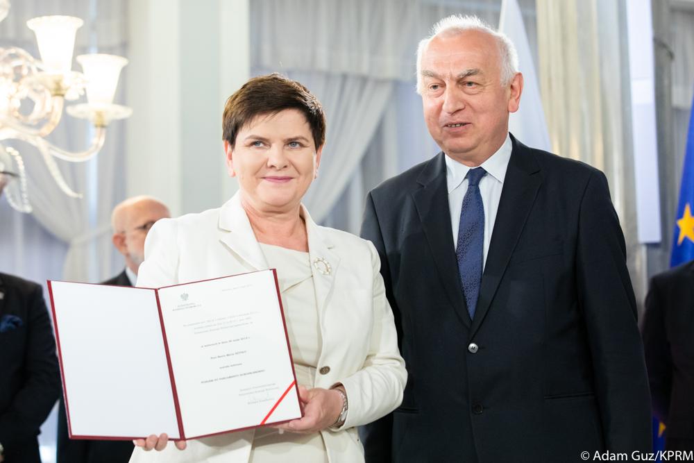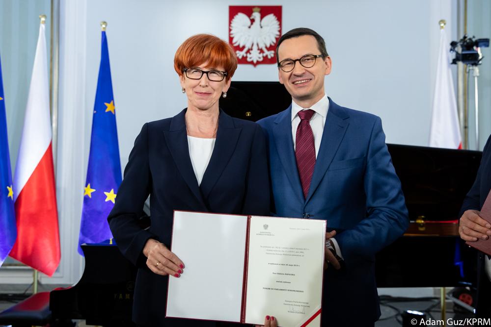 Uroczystość wręczenia posłom do Parlamentu Europejskiego zaświadczeń o wyborze z udziałem premiera