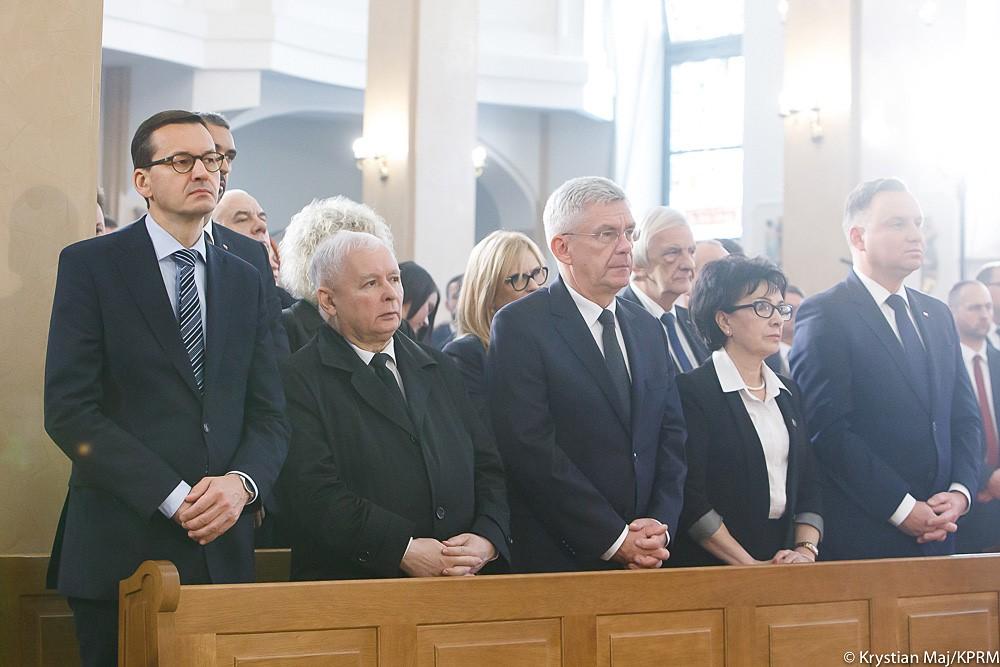 W uroczystościach wzięli też udział m.in. prezydent Andrzej Duda, członkowie rządu i parlamentarzyści, a także marszałek Sejmu Elżbieta Witek, marszałek Senatu Stanisław Karczewski oraz prezes PiS Jarosław Kaczyński.