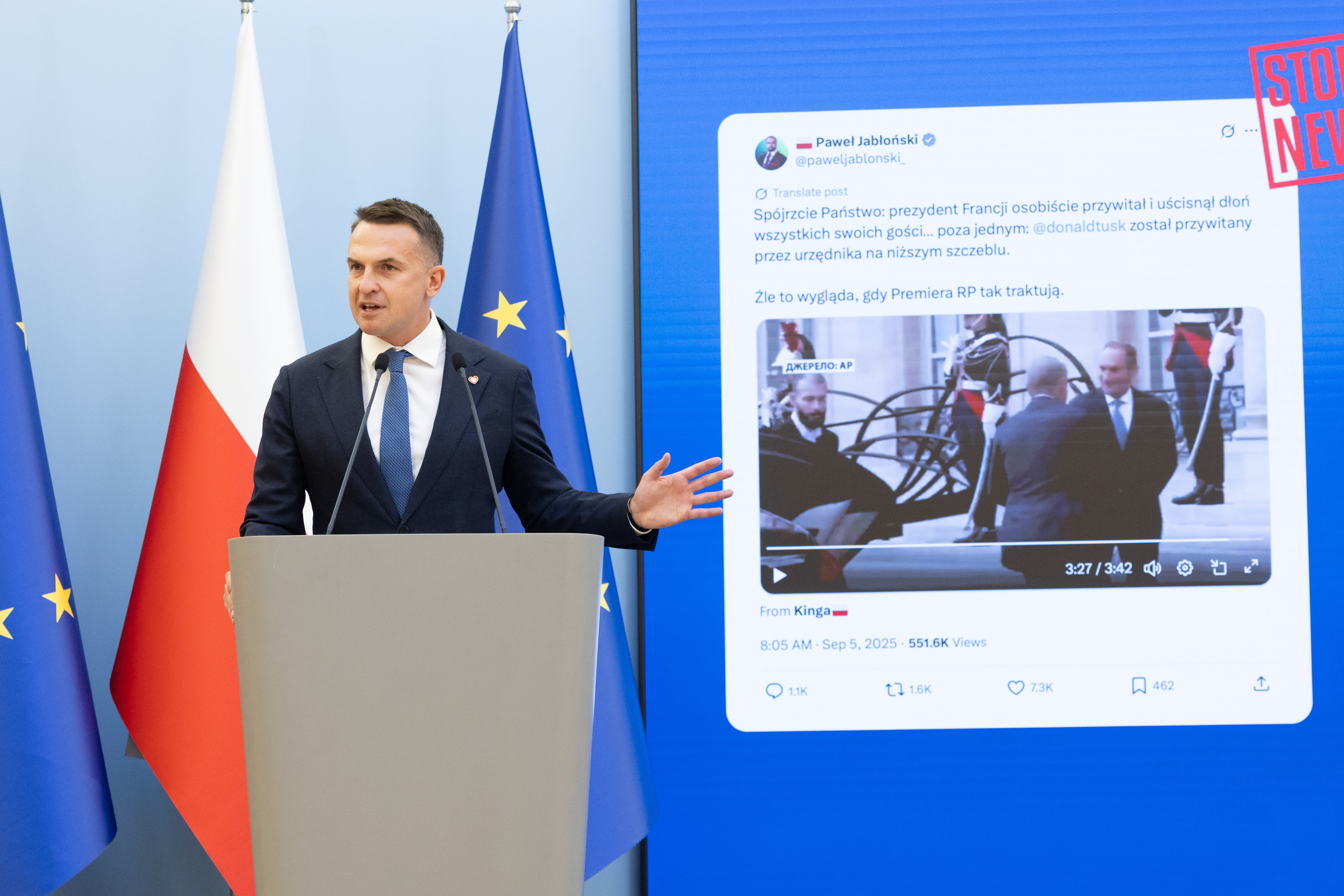 Rzecznik Rządu zwrócił uwagę na narastającą falę dezinformacji w przestrzeni publicznej. Podkreślił, że fałszywe informacje dotyczyły m.in. wizyty Premiera Donalda Tuska w Paryżu i spotkania z Prezydentem Francji Emmanuelem Macronem, które próbowano przedstawić jako dyplomatyczny afront wobec Polski.