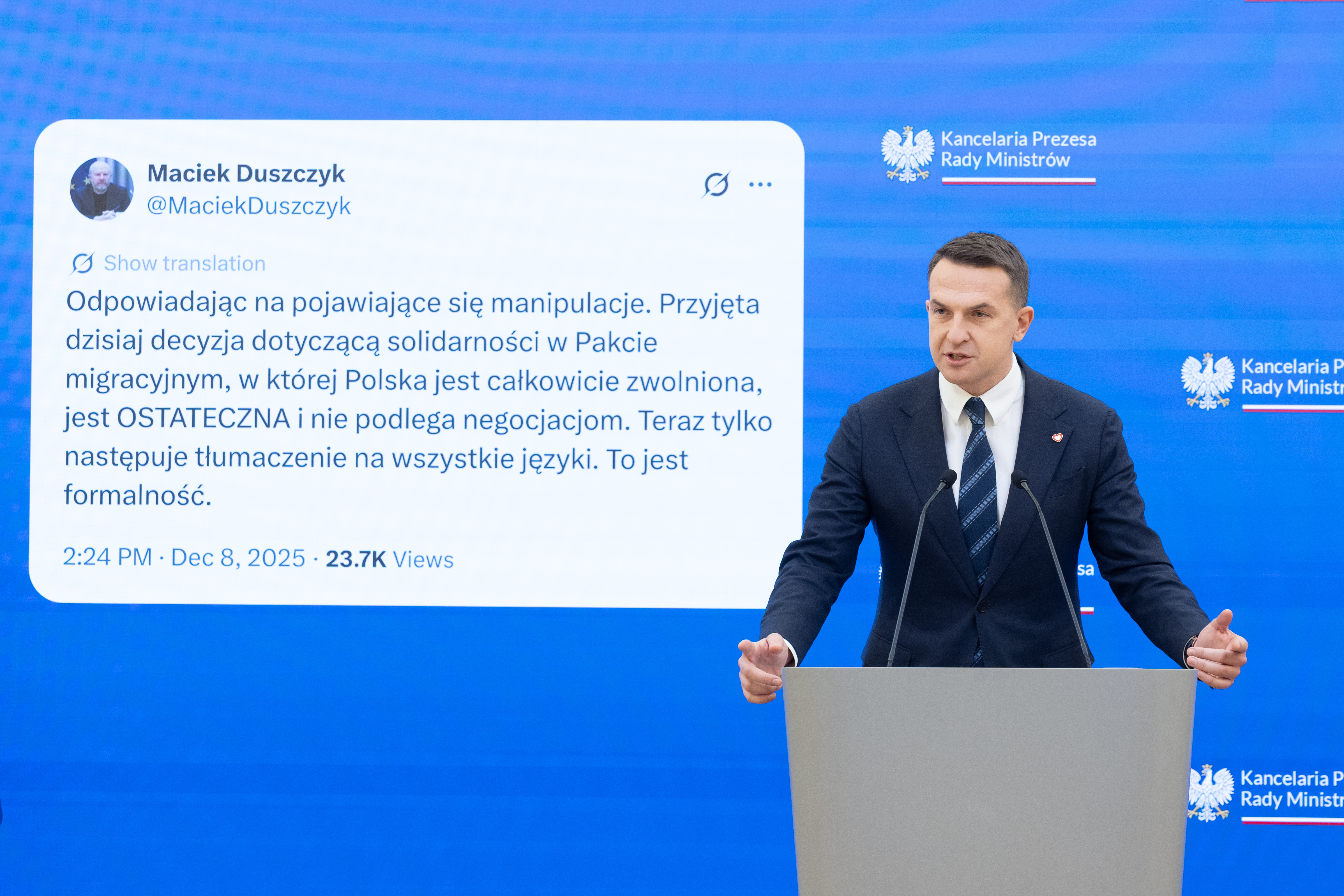 Polska została zwolniona z paktu migracyjnego na rok. Zwolnienie z paktu obejmuje zarówno relokację jak i wnoszenie opłat solidarnościowych, a więc chodzi o całkowite zwolnienie z mechanizmu solidarności. Decyzja ta nie podlega negocjacjom.