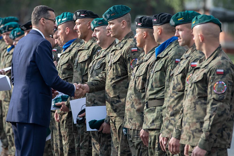 Premier Mateusz Morawiecki podziękował żołnierzom za ich służbę ku chwale Ojczyzny i za gotowość do służby w różnych częściach świata.