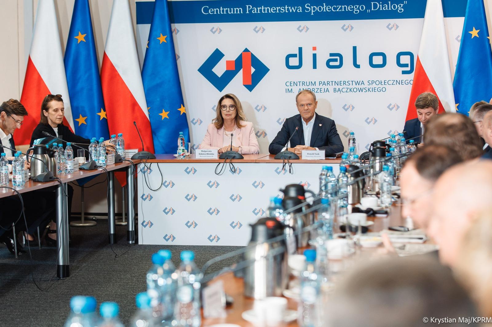 W Centrum Partnerstwa Społecznego „Dialog”, z inicjatywy Premiera Donalda Tuska odbył się okrągły stół z przedstawicielami mediów, dotyczący zmian w prawie autorskim. W rozmowach uczestniczyła także Marszałek Senatu Małgorzata Kidawa-Błońska. Tematem spotkania była nowelizacja ustawy wdrażającej unijną dyrektywę DSM (Digital Single Market). Donald Tusk wyraził przekonanie, że media i rząd chcą w tej sprawie dojść do „wspólnego celu”. Odpowiednie rozwiązania przygotuje specjalny zespół złożony z przedstawicieli Ministerstwa Kultury i Dziedzictwa Narodowego oraz wydawców.