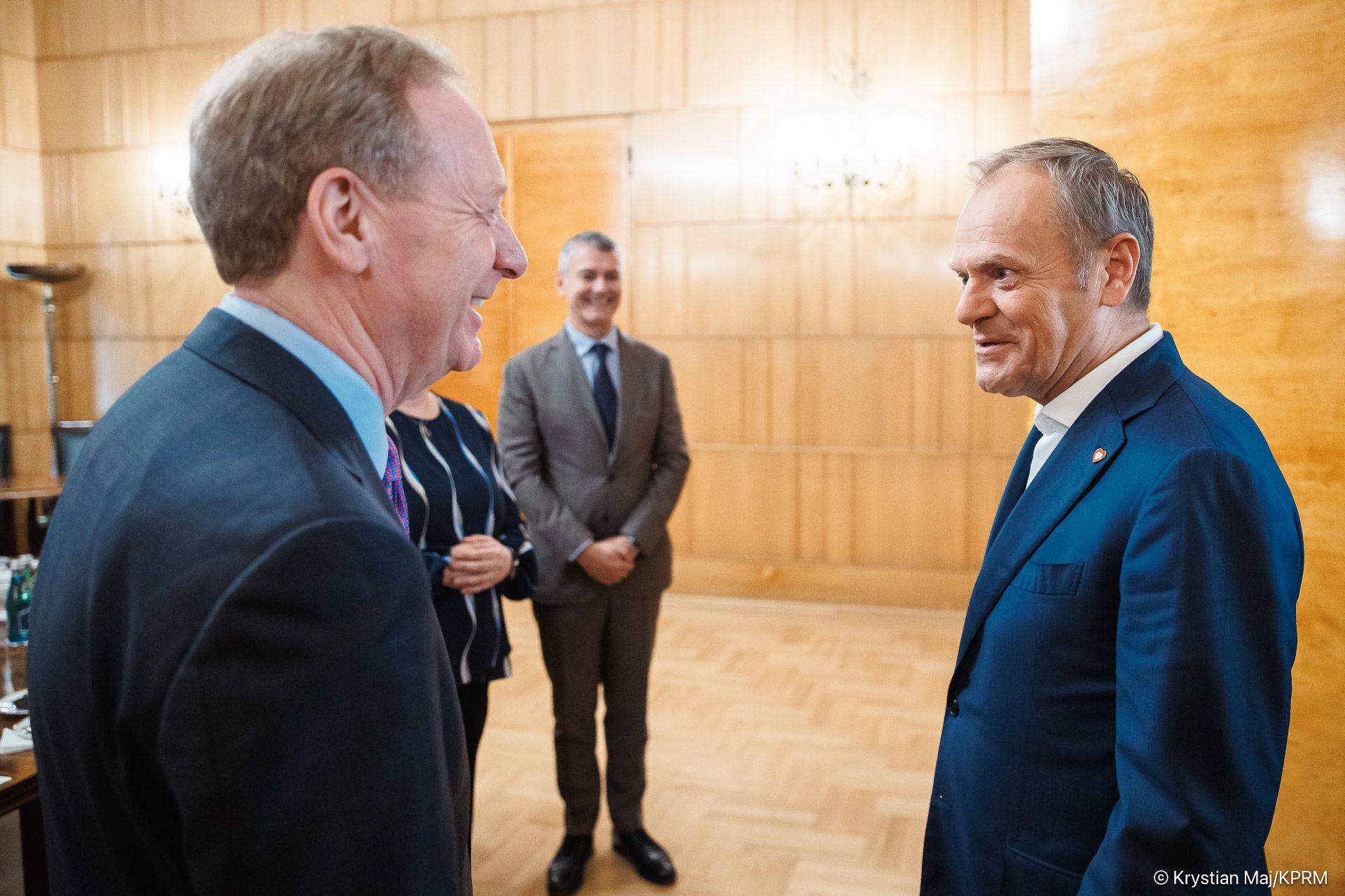 Wzmacnianie cyberbezpieczeństwa i walka z dezinformacją – spotkanie Premiera z Wiceprezesem i Prezydentem Microsoftu