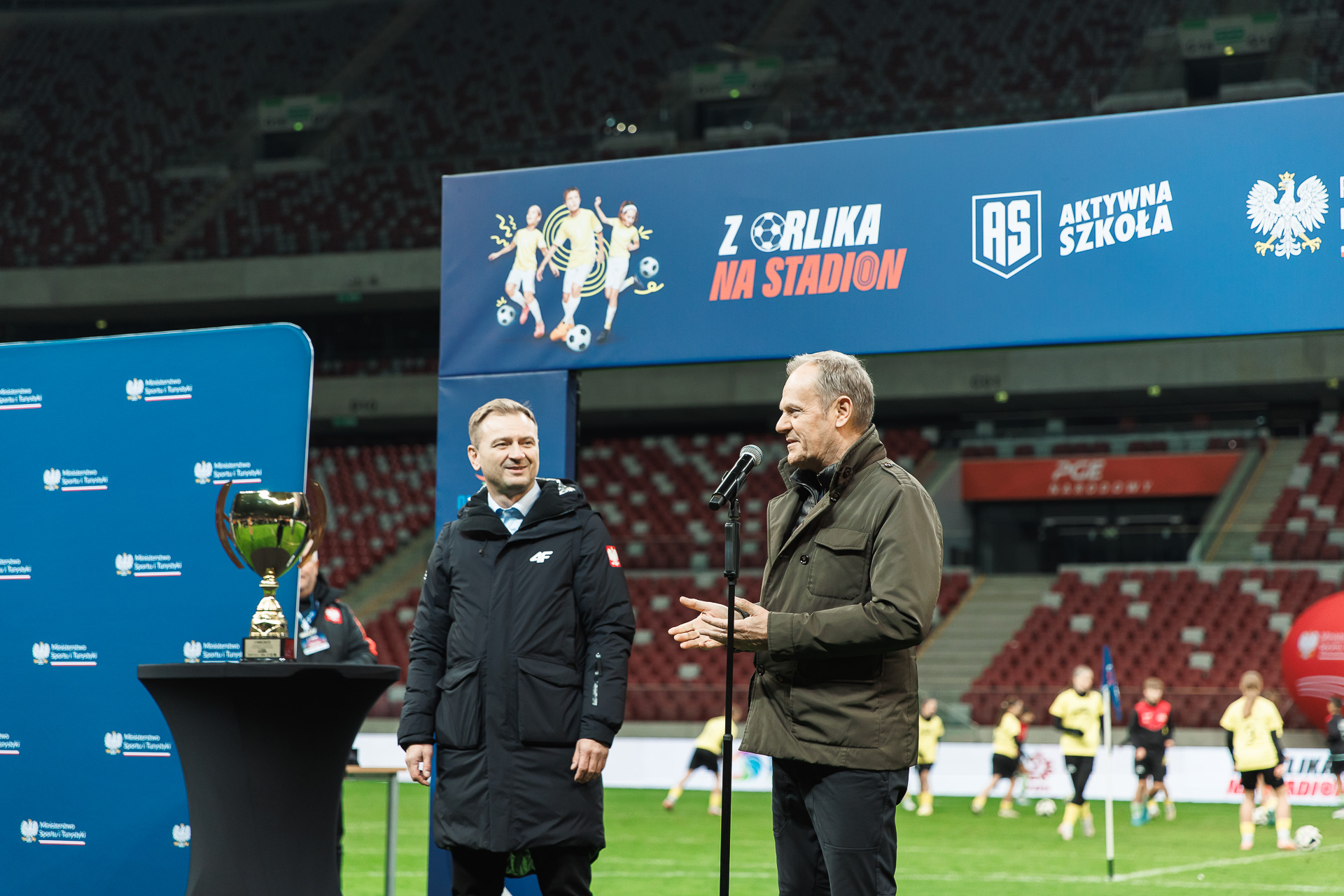 Ponad 10 tys. meczów i ponad 50 tys. strzelonych bramek – to imponujący bilans ogólnopolskiego turnieju piłki nożnej dla dziewcząt i chłopców „Z Orlika na Stadion”, który odbył się w ramach programu „Aktywna Szkoła”. Dzisiejszy wielki finał, w którym rywalizowało ze sobą 48 najlepszych zespołów, został rozegrany na stadionie PGE Narodowy. W uroczystości wręczenia nagród wziął udział Premier Donald Tusk, który pogratulował wszystkim uczestnikom.