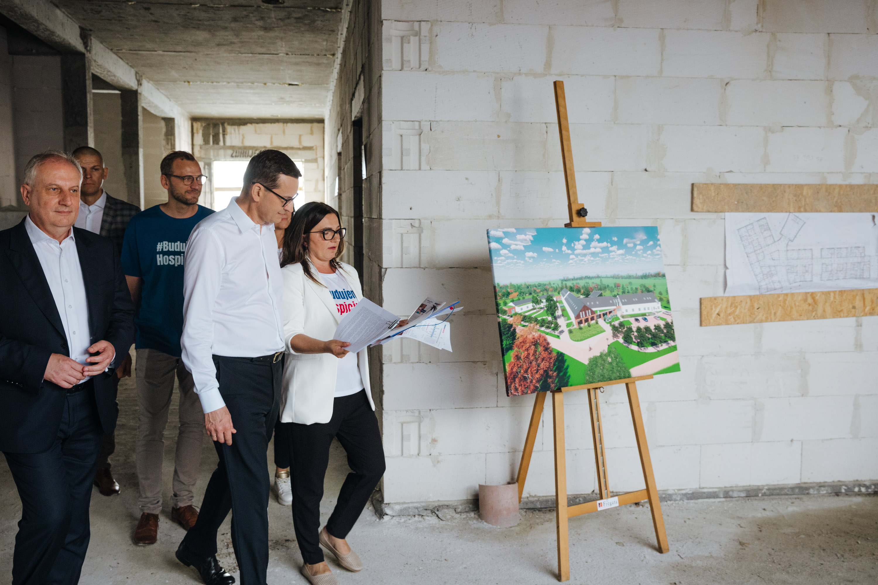 Prime Minister Mateusz Morawiecki visited the construction site of the St Joseph's hospice in Pogorzelice. By a decision of the Prime Minister, the investment received funding of PLN 800,000 last year, representing 28 per cent of the value of the project. This investment demonstrates maturity and social empathy and shows how local determination can produce results. This type of initiatives are held in the highest regard.