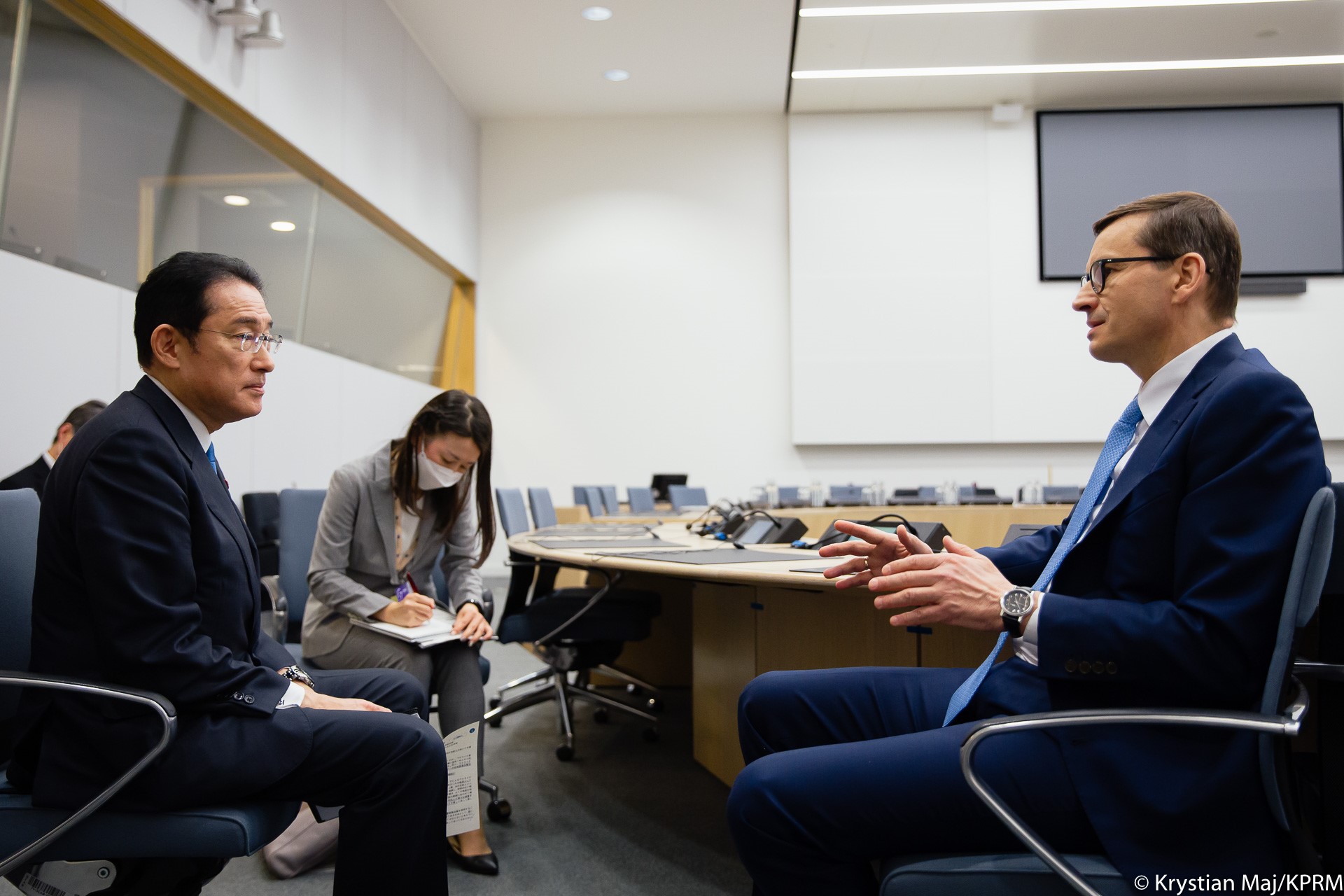 The situation in Ukraine was the main topic discussed during today’s meeting between Prime Minister Mateusz Morawiecki and Prime Minister of Japan Fumio Kishida in Brussels. This is the second meeting between the two Prime Ministers to have taken place recently. The Prime Ministers discussed the further political and economic steps which should be taken in response to the Russian aggression. The Head of the Government called for firm and consistent sanctions aimed at convincing the Russian aggressor to end the war. The meeting was yet another element of diplomatic actions taken by the Prime Minister to build global solidarity with Ukraine and a firm attitude of the entire world towards the Russian aggression.