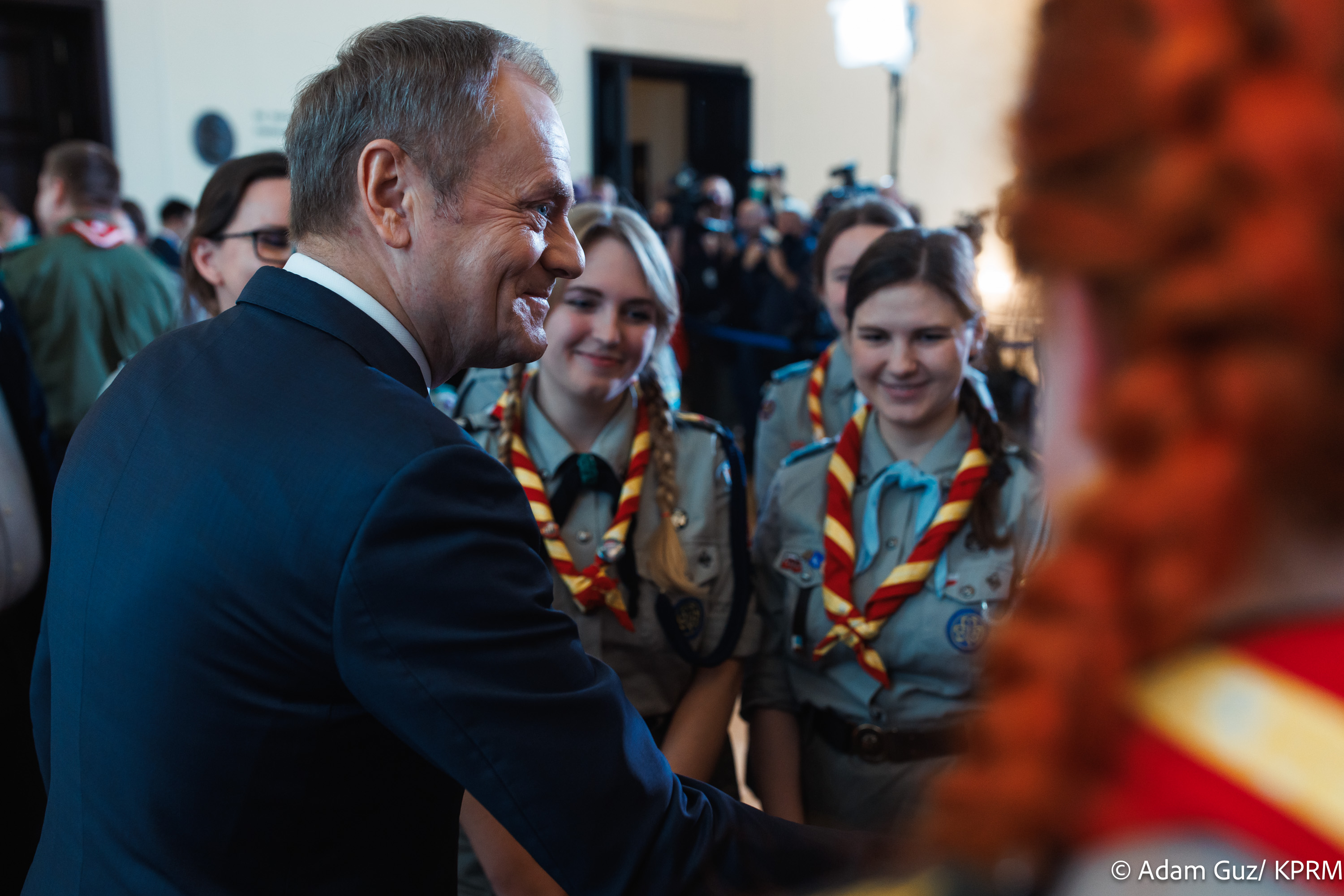 Prime Minister Donald Tusk receives the Peace Light of Bethlehem from scouts