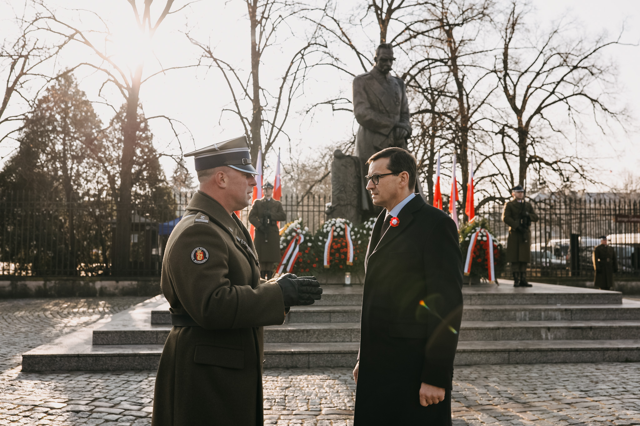 Afterwards, the Prime Minister attended the ceremonial Changing of the Guard and Remembrance Roll Call ceremony at Warsaw’s Marshall Józef Piłsudski Square. The ceremony began with the joint singing of Poland’s National Anthem. During the ceremony’s course, Prime Minister Mateusz Morawiecki laid flowers at the Tomb of the Unknown Soldier, as well as the Marshall Józef Piłsudski Monument.