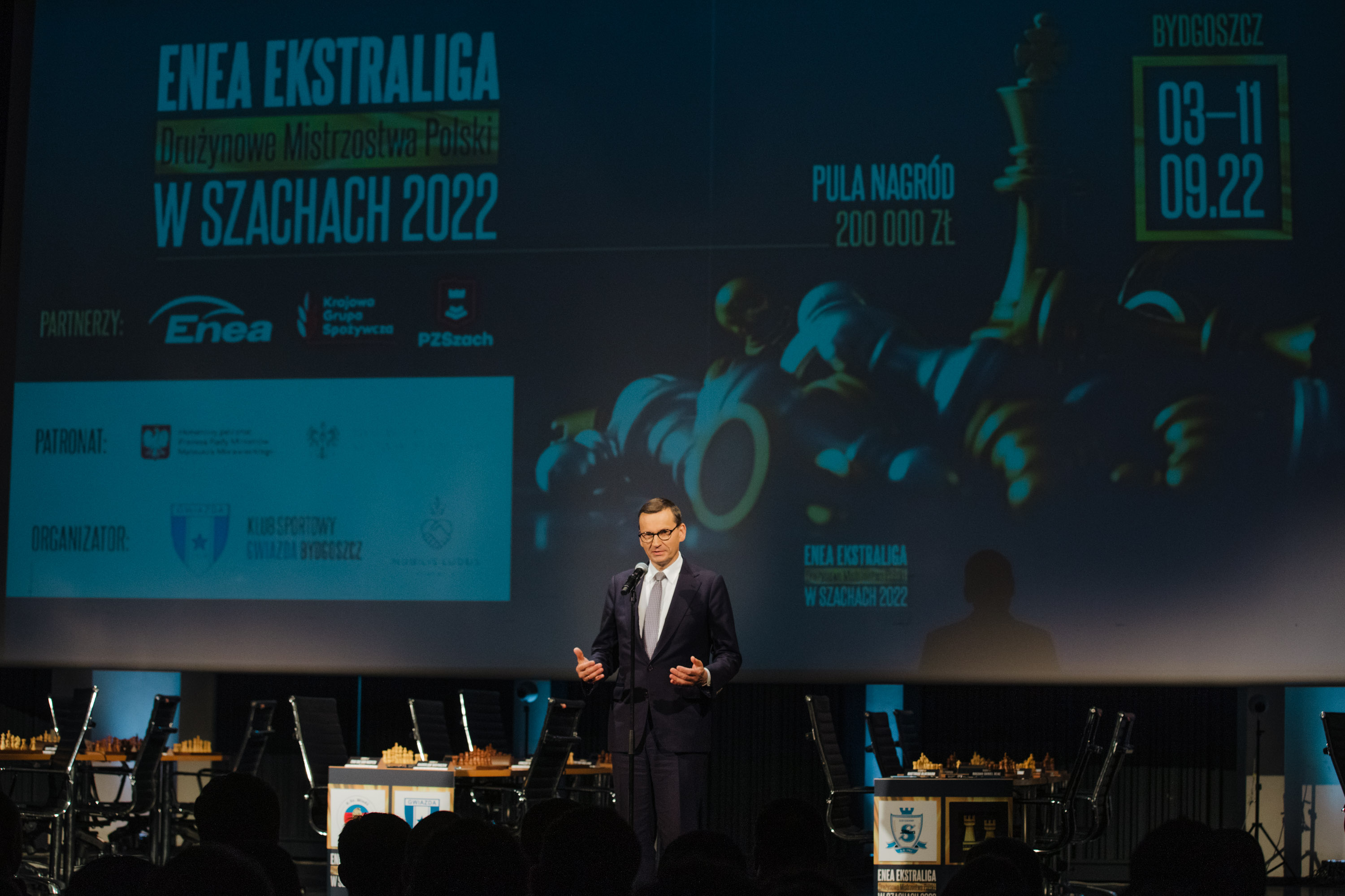 Prime Minister Mateusz Morawiecki has taken part in the opening ceremony of the Enea Ekstraliga 2022 Tournament – the Polish Team Chess Championship. The Head of the Government said that every young man who fell in love with this game would be a good and wise Pole. The Prime Minister opened the game by making the first chess move.