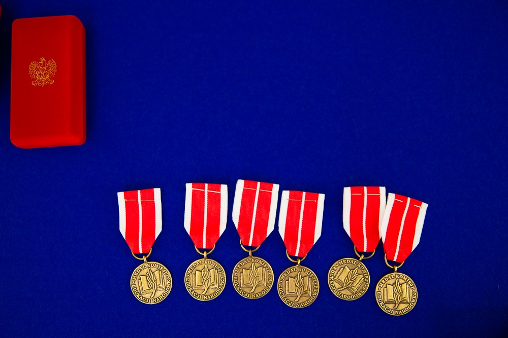 During this year's National Education Day celebrations at the Chancellery of the Prime Minister, 57 teachers received medals and honours. Distinguished teachers and educational workers received the Cross of Merit, Medals for Long-term Service and Awards of the Minister of Education and Science.