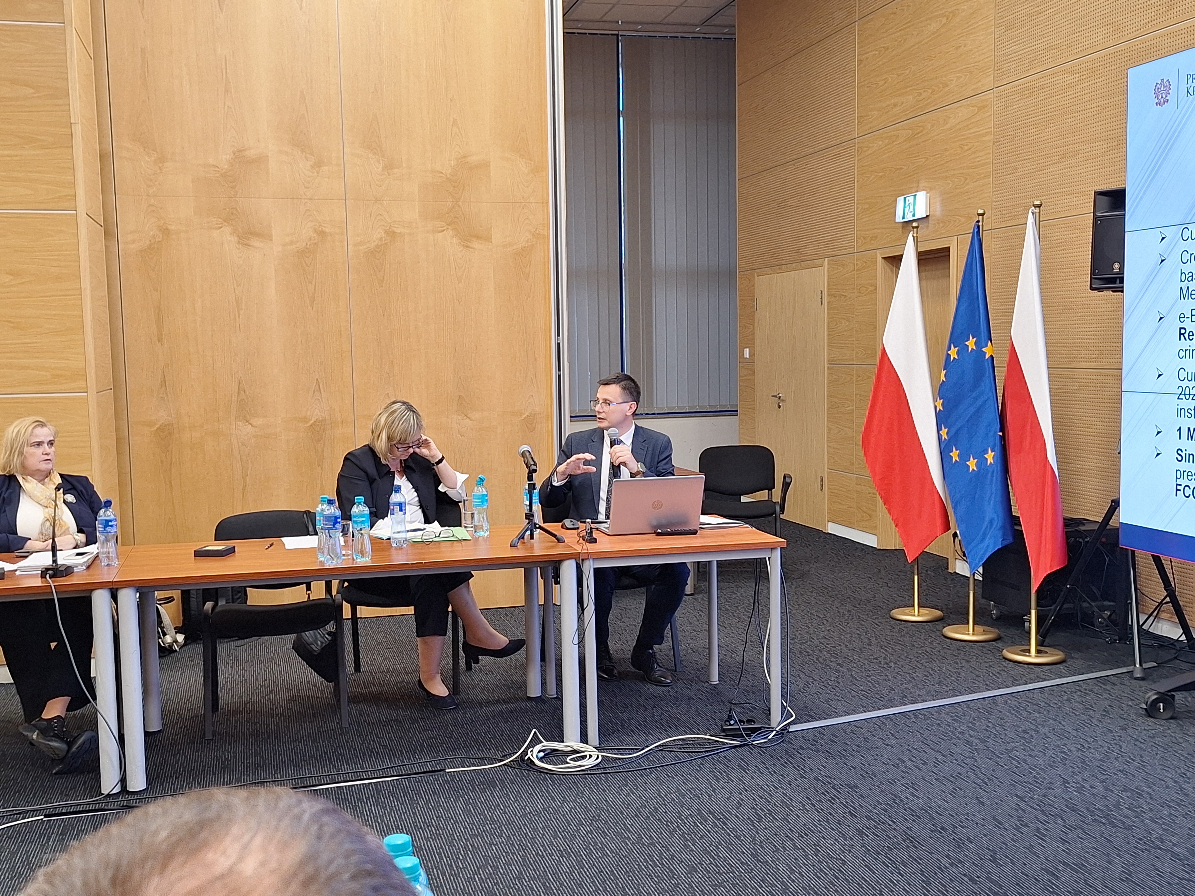 Spotkanie rozpoczęło wystąpienie Dyrektora Biura Współpracy Międzynarodowej w Prokuraturze Krajowej Mirosława Jerzego Iwanickiego, który omówił aktualny stan prac związanych z przygotowaniem polskiej prokuratury do działania w ramach Prokuratury Europejskiej.