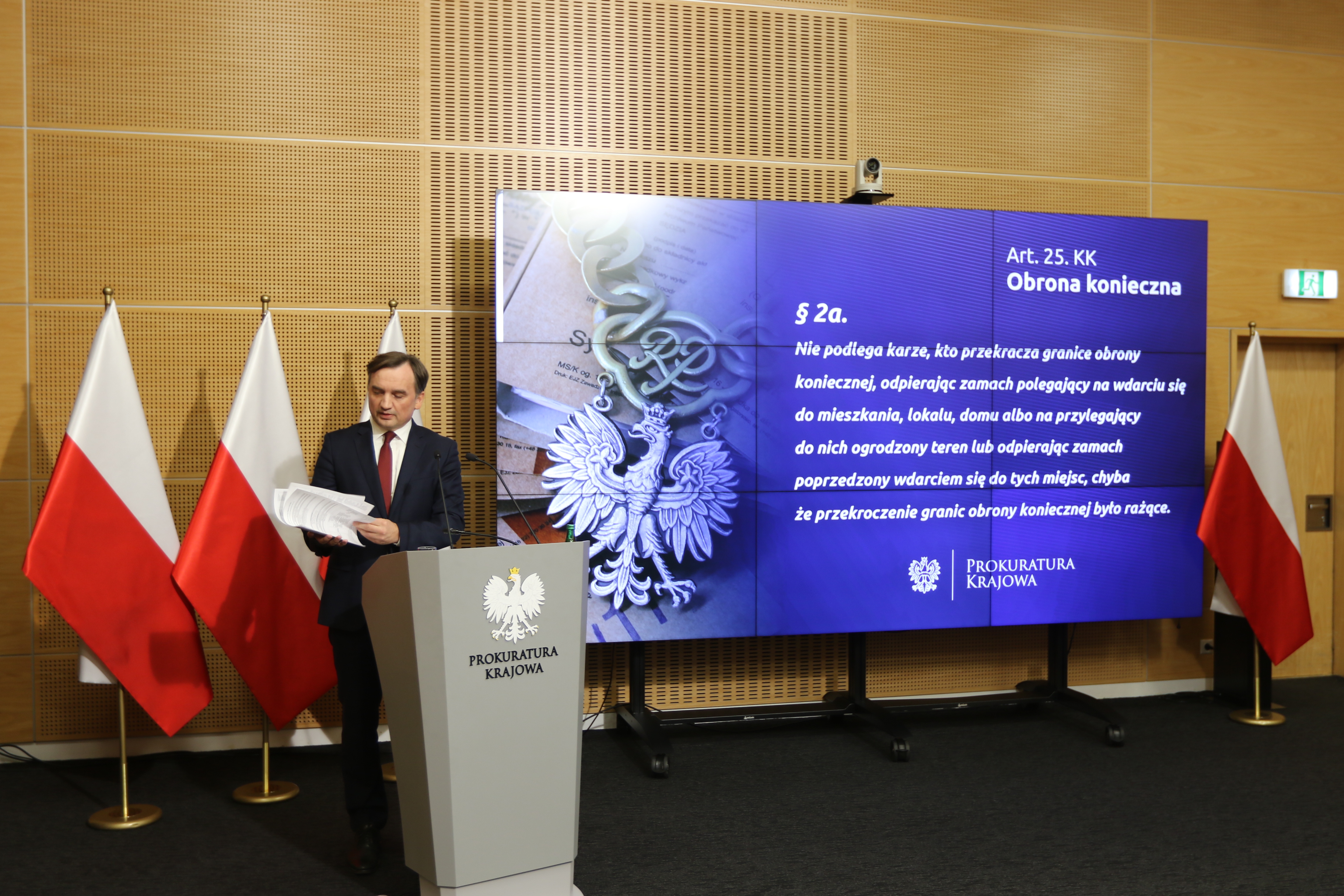 W tym kontekście Prokurator Generalny przypomniał, że znowelizowany w 2017 roku kodeks karny przewiduje odstąpienie od karania osób, które przekroczyły obronę konieczną, broniąc swojego życia na terenie własnej posesji.