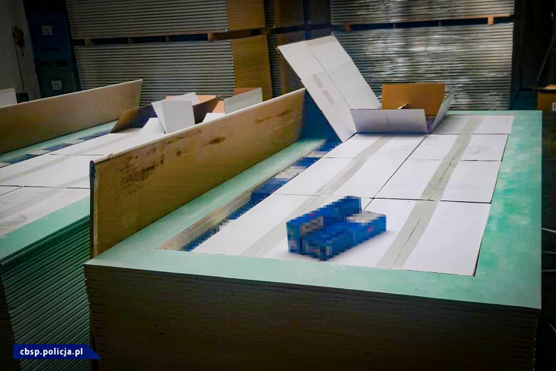 Funkcjonariusze przeszukali również jedną z hal magazynowych, znajdującą się w powiecie radomszczańskim, gdzie odkryli kolejne nielegalne wyroby tytoniowe. Tam przejęli prawie 10 milionów papierosów, ukrytych na paletach z płytami elewacyjnymi.