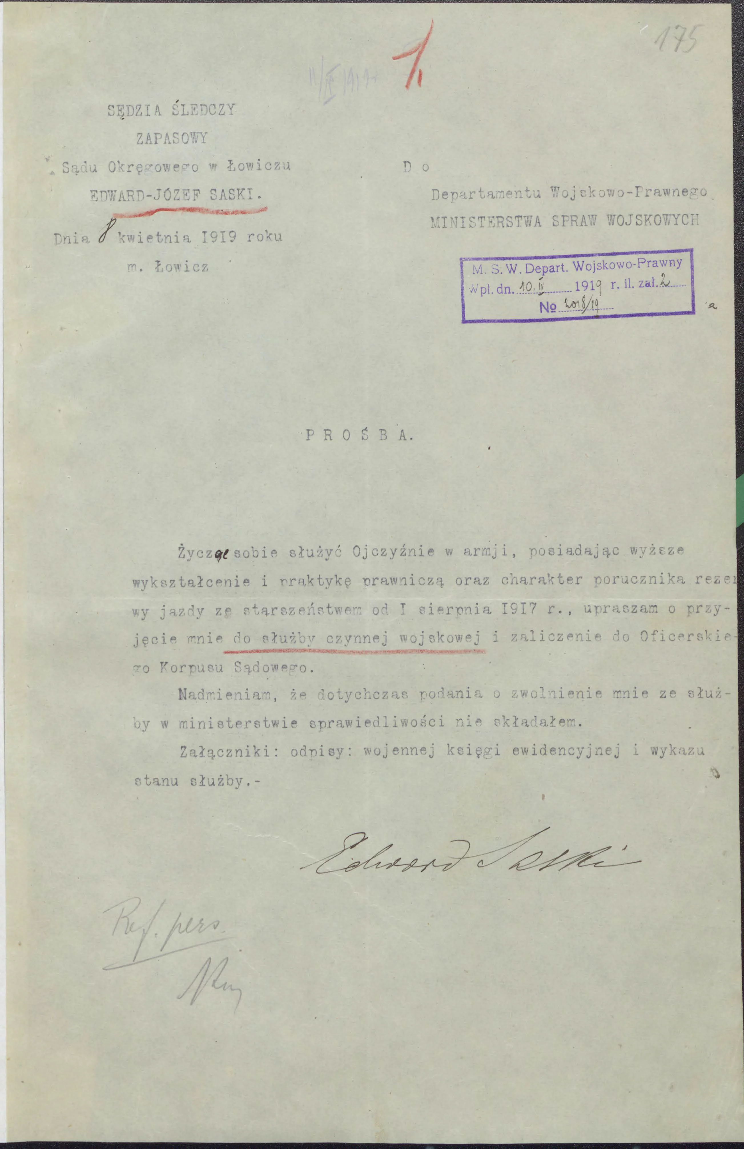 1.Dziennik Personalny Ministerstwa Spraw Wojskowych