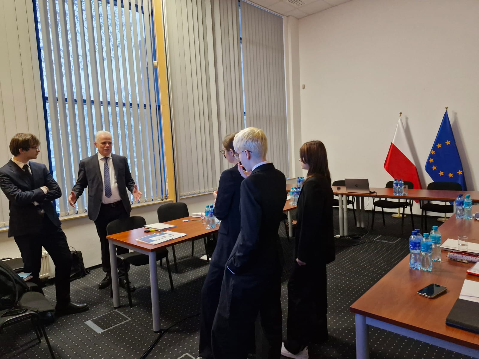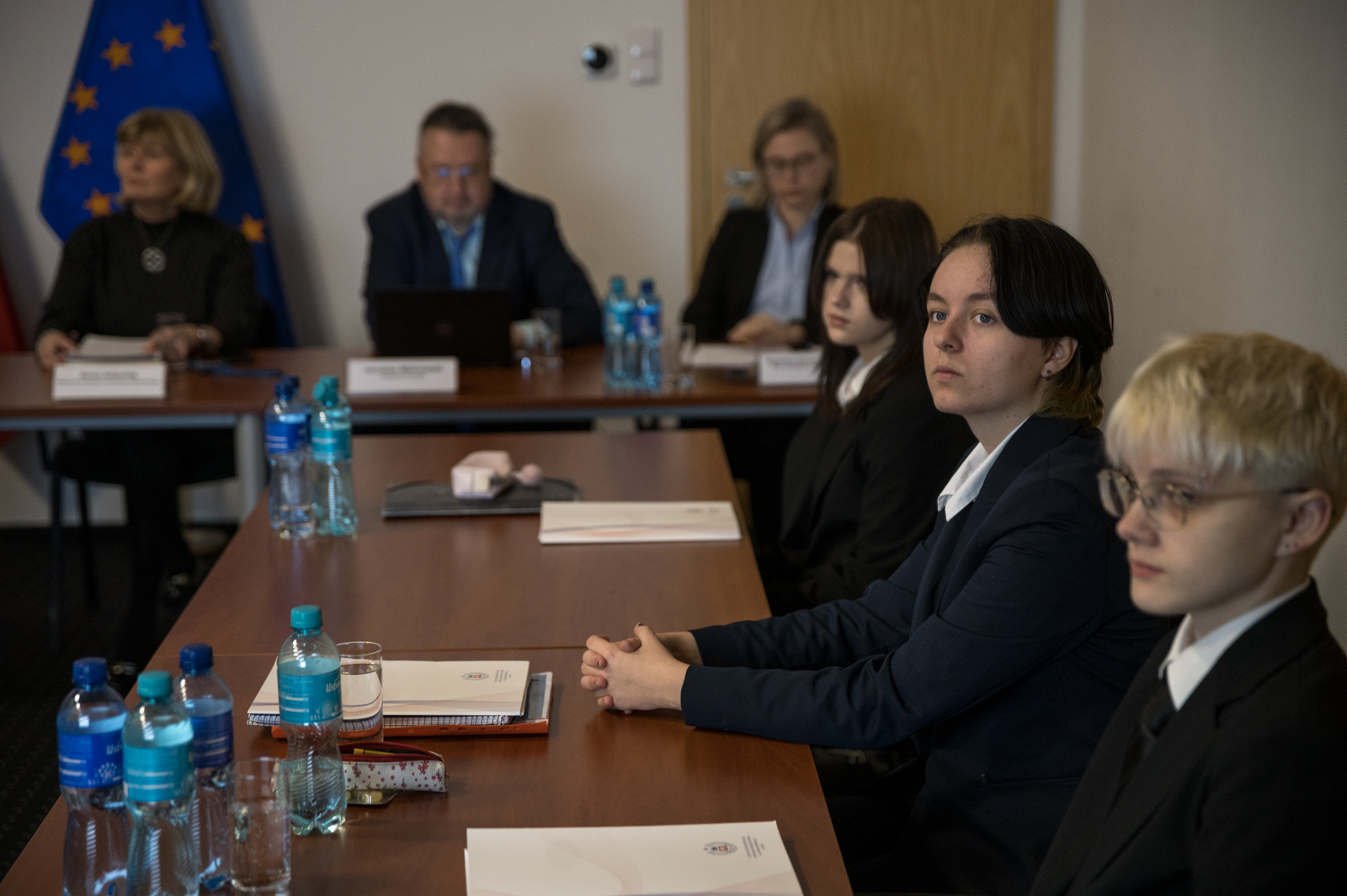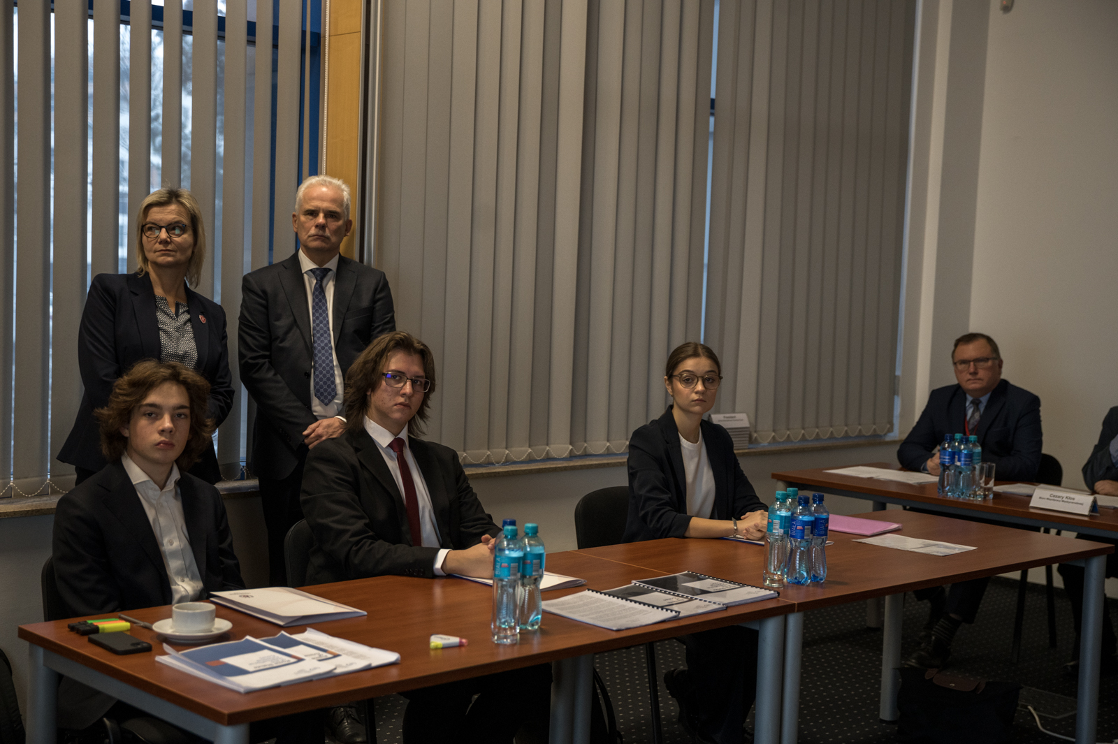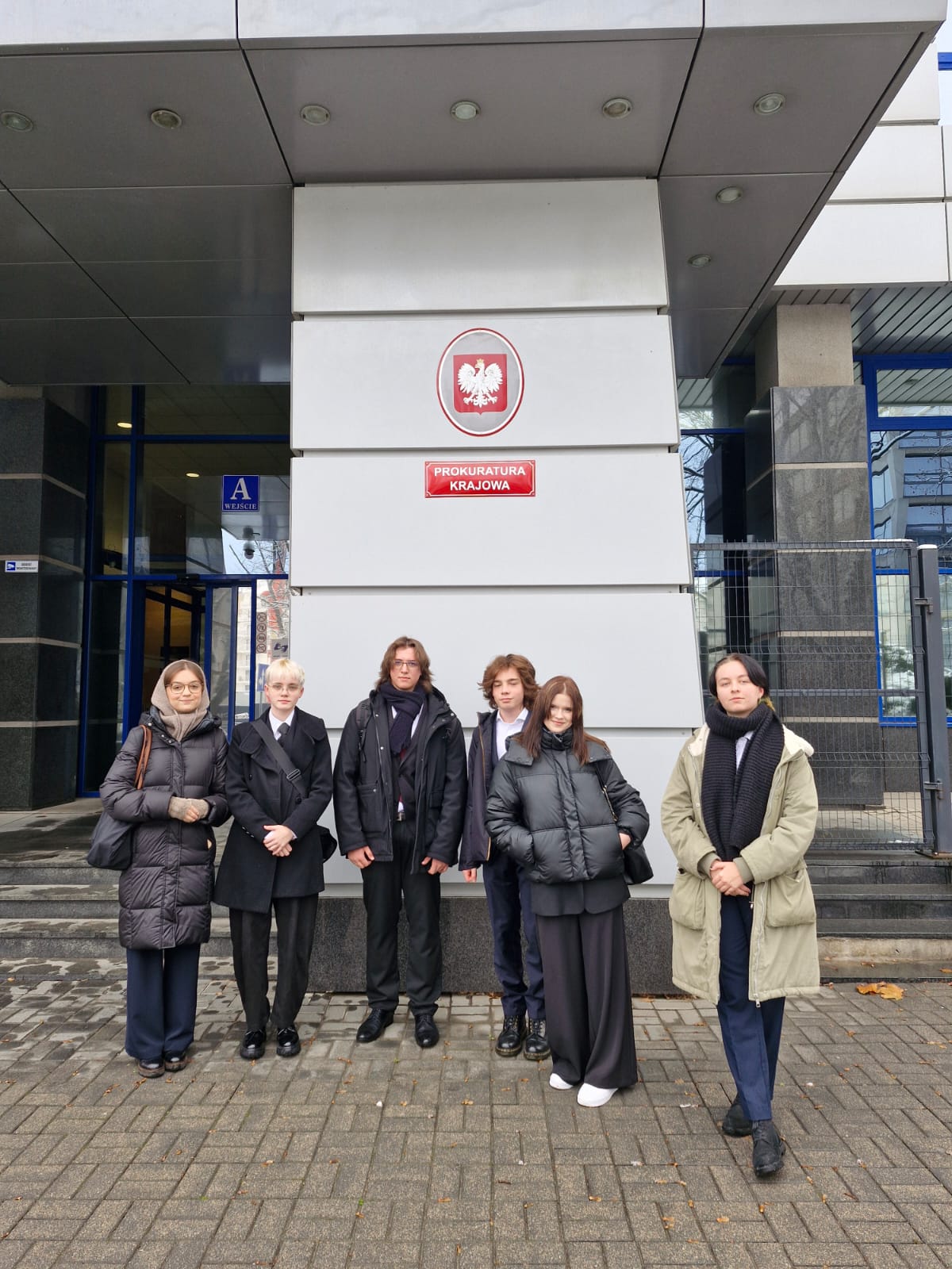 Spotkanie odbyło się 22 listopada 2024 r. w siedzibie Prokuratury Krajowej. Do Warszawy przyjechało 7 uczniów, Anna Ćwiklińska - Rutka nauczycielka koordynatorka projektu oraz prok. Mariusz Marciniak z Prokuratury Regionalnej w Gdańsku – od wielu lat uczestniczący w przygotowaniu młodzieży do konkursu.