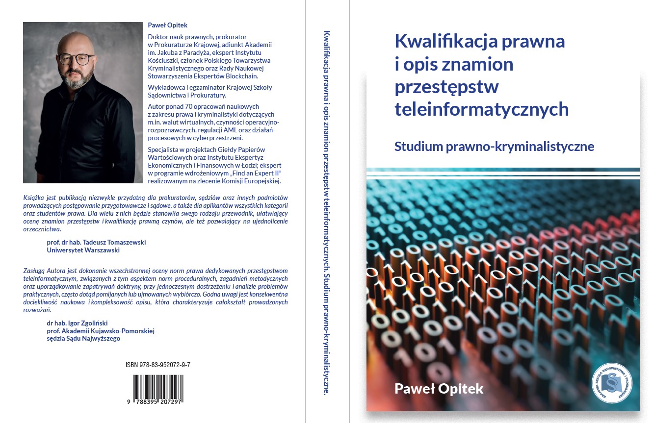 Monografia dra Pawła Opitka pt. „Kwalifikacja prawna i opis znamion przestępstw teleinformatycznych. Studium prawno-kryminalistyczne” konsekwentnie wpisuje się w realizowany od 2016 r. plan badawczy autora nad przestępczością dotyczącą świata wirtualnego oraz nowych technologii. Już wcześniej ukazały się publikacje o podobnej tematyce w tym: „Transakcje oszukańcze kartą płatniczą”, „Skimming w bankowości elektronicznej”, „Cyberprzestępczość w pracy prokuratora”, „Wykorzystanie kryptoaktywów do popełniania przestępstw”.