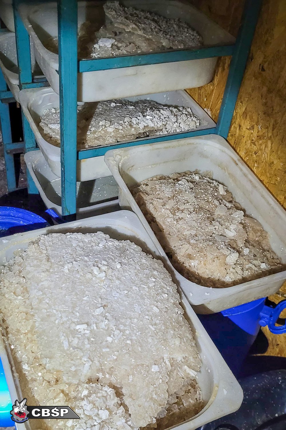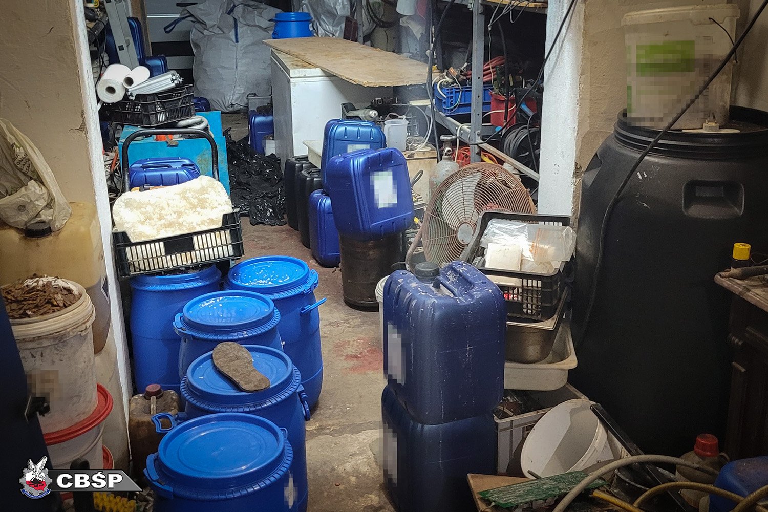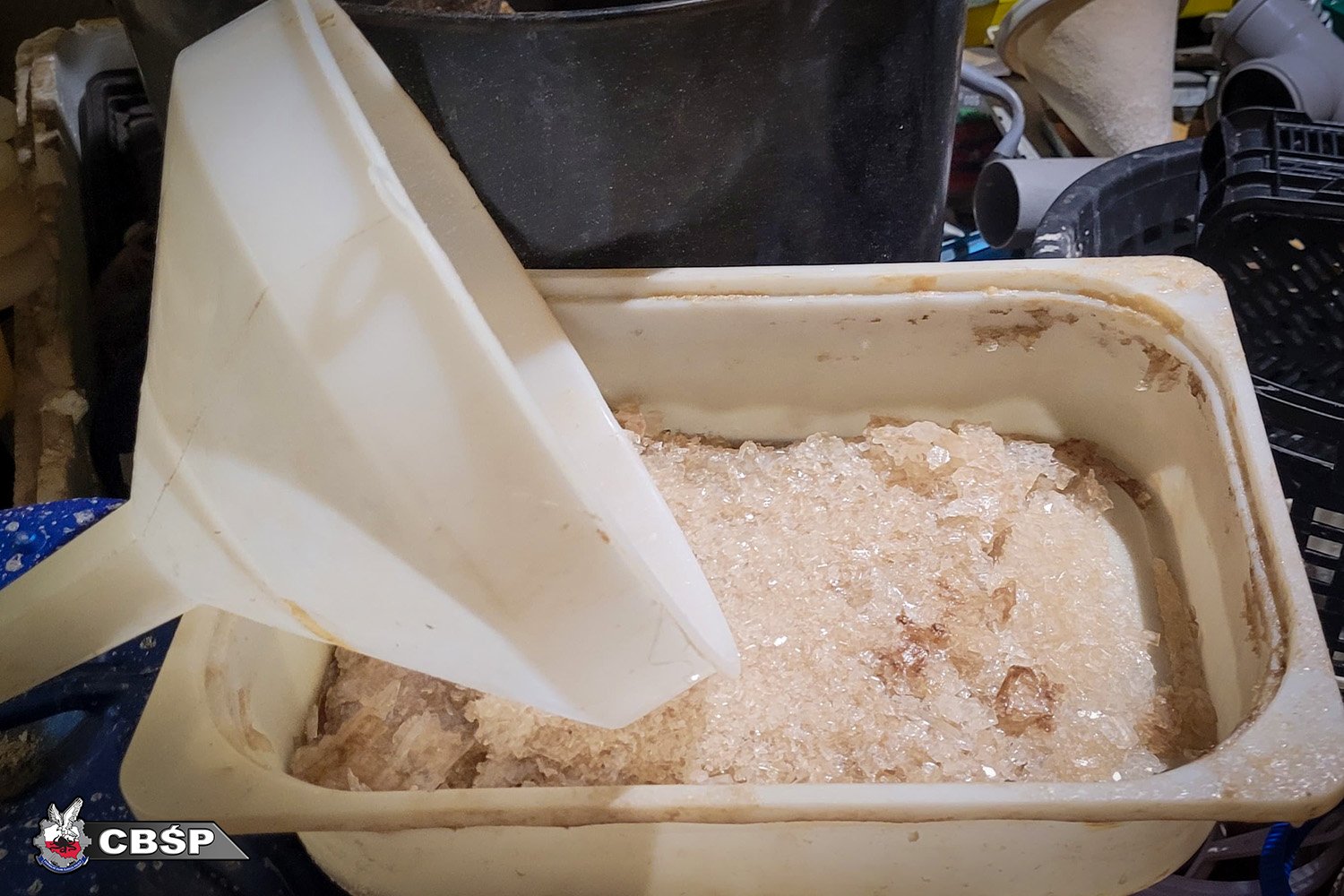 Podczas przeszukania „laboratorium” zabezpieczono łącznie około 500 kg narkotyku, a także 3 tys litrów odpadów poprodukcyjnych. Część zabezpieczonych narkotyków znajdowała się w fazie krystalizacji. Szacunkowa wartość zabezpieczonych substancji to około 25 mln zł.