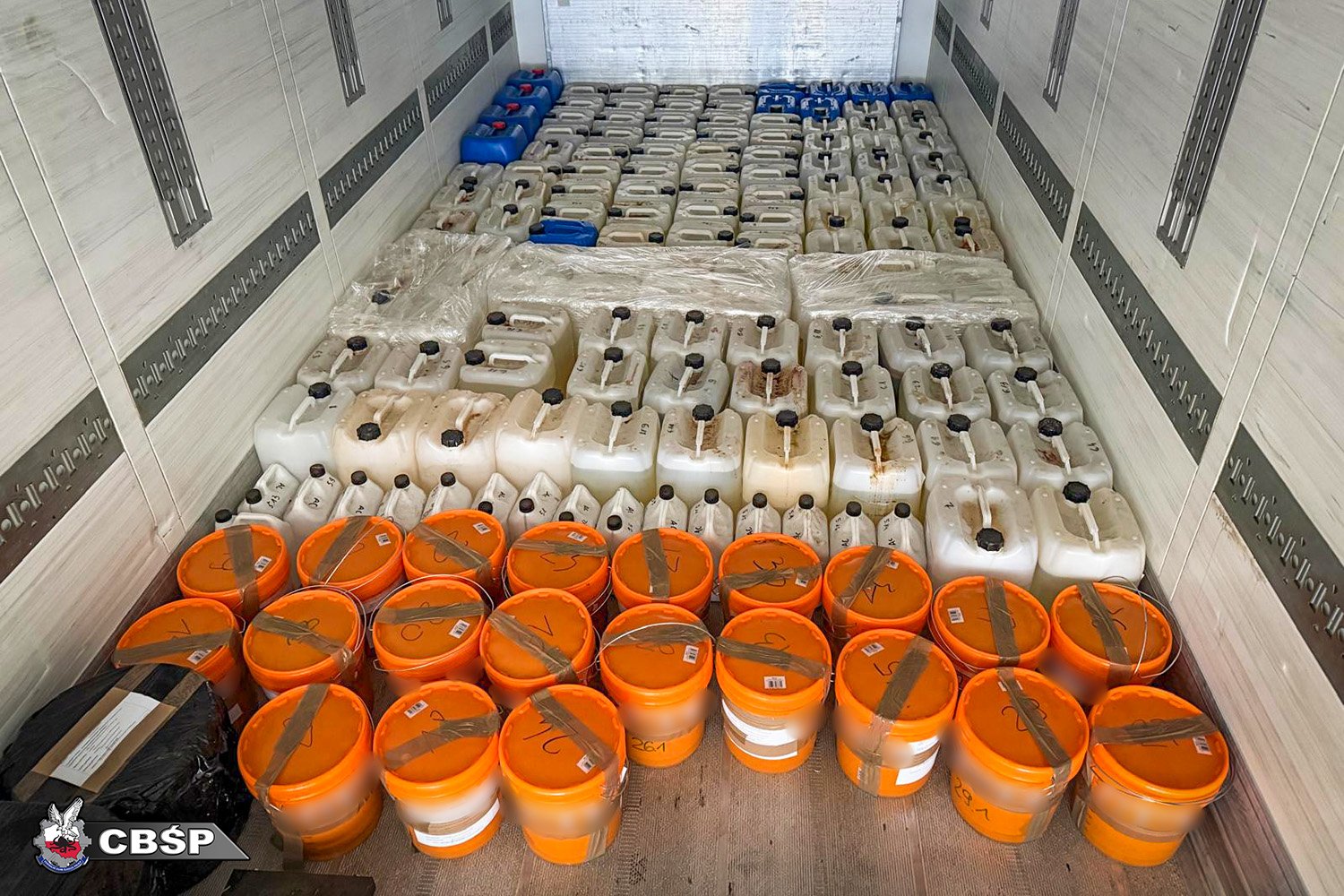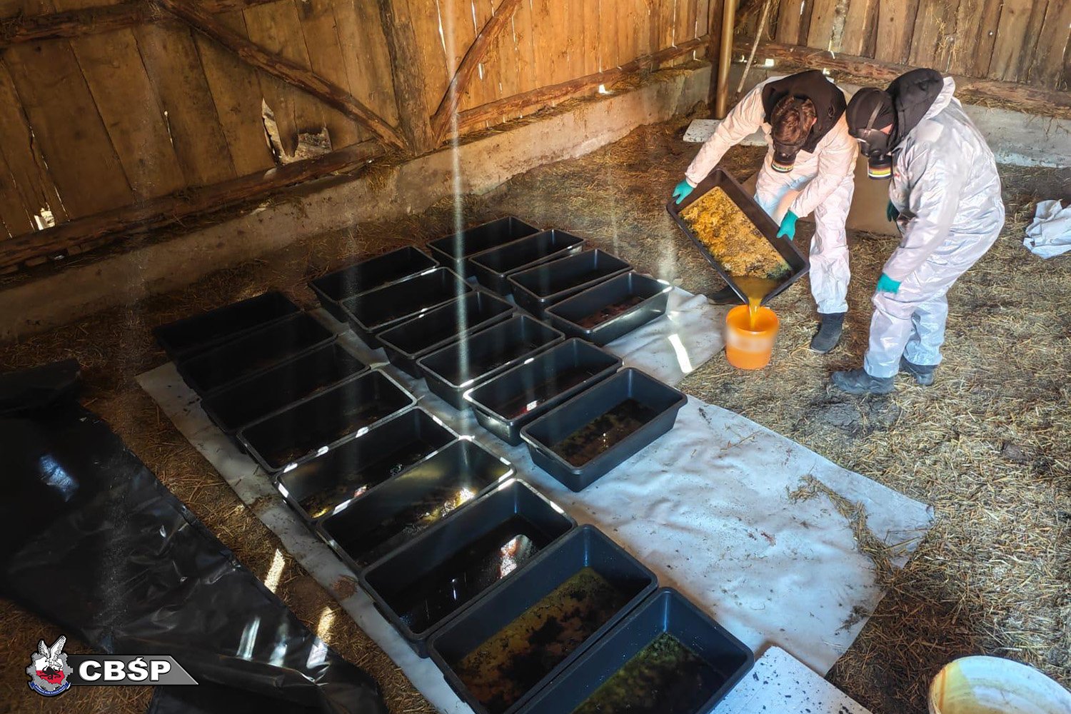 W wyniku przeszukania „laboratorium” zabezpieczono łącznie blisko 120 kg klofedronu w postaci kryształu, ponad 600 litrów substancji w formie płynnej oraz około 1000 litrów odczynników chemicznych wykorzystywanych do produkcji narkotyku.