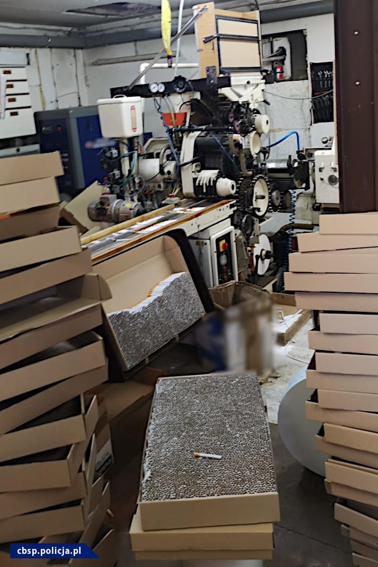 Podczas przeszukania pomieszczeń nielegalnej wytwórni zabezpieczono profesjonalną maszynę do produkcji papierosów, której wydajność to 2 tysiące sztuk na minutę. Poczynione w śledztwie ustalenia wskazują, że w wyniku przestępczych działań Skarb Państwa został narażony na uszczuplenie podatku akcyzowego w kwocie co najmniej 6 milionów złotych.