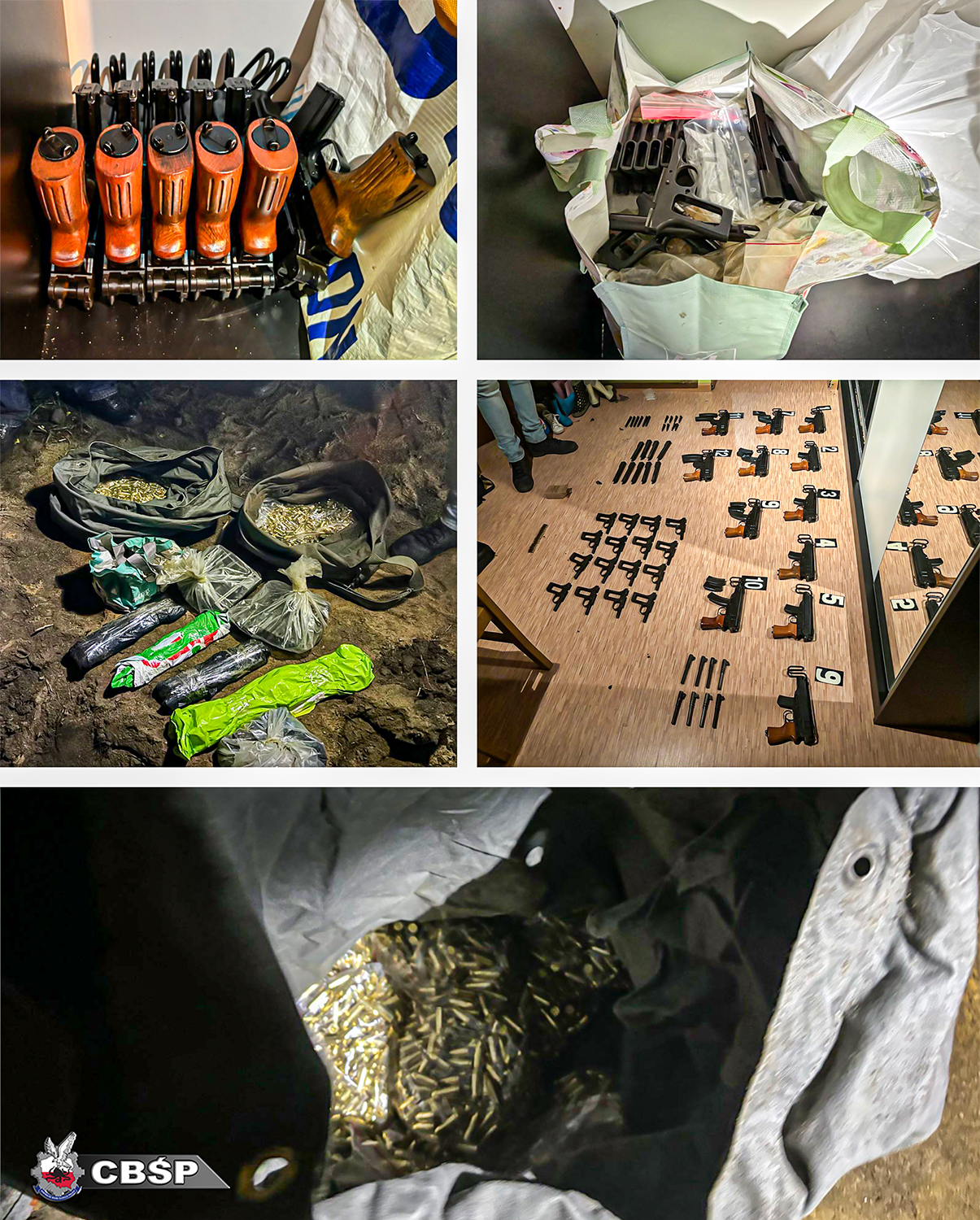 Podejrzany został zatrzymany przez funkcjonariuszy Centralnego Biura Śledczego Policji po wjeździe do kraju z terytorium Republiki Czeskiej. W jego samochodzie ujawniono istotne elementy broni palnej, z których można było skompletować pistolety maszynowe UZI. W toku dalszych czynności zabezpieczono, m.in dwa pistolety, dwa rewolwery, czternaście karabinów i karabinów maszynowych, osiemnaście pistoletów maszynowych, sto osiemdziesiąt sześć istotnych elementów broni palnej w postaci luf, zamków i komór zamkowych, szkieletów oraz siedemnaście tysięcy pięćset sztuk amunicji różnego rodzaju i kalibru.