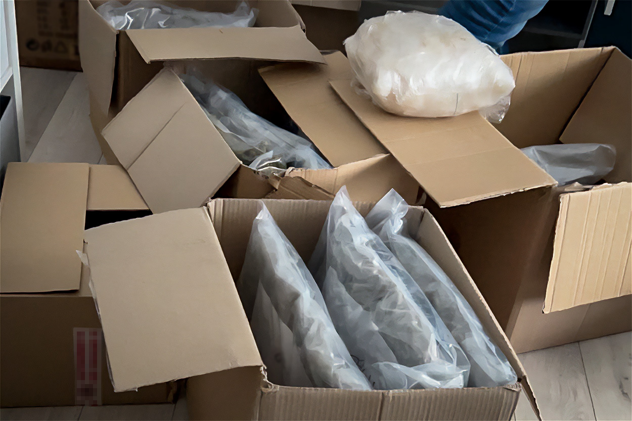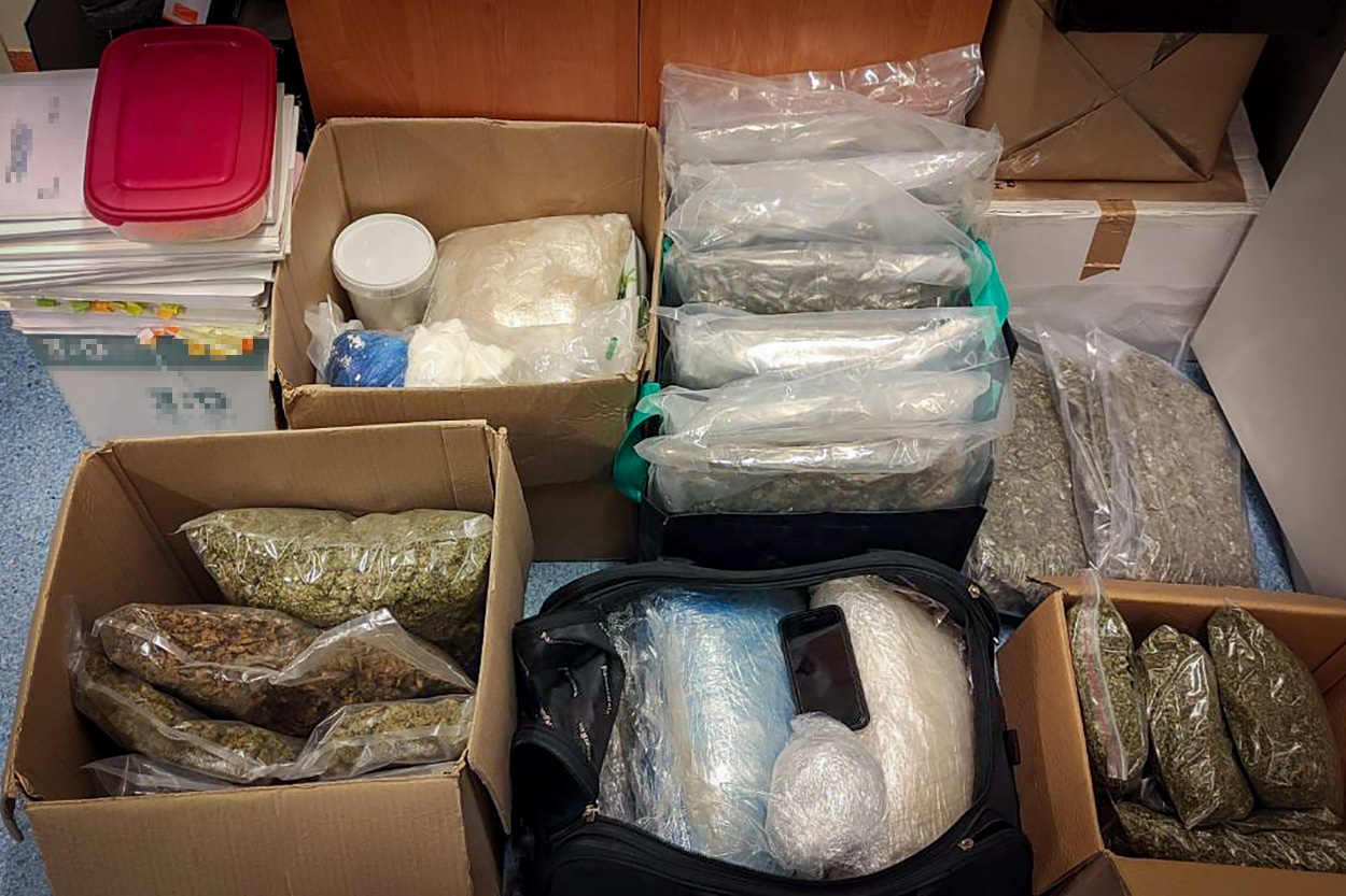 W trakcie przeszukań wnętrz mieszkań i pojazdu użytkowanych przez Michała O. policjanci ujawnili i zabezpieczyli znaczne ilości substancji psychotropowych w postaci amfetaminy o masie prawie 3 kg i 3-CMC (klofedron) o masie ponad 18 kg oraz znaczne ilości środka odurzającego w postaci suszu ziela konopi innych niż włókniste o masie ponad 17 kg i kokainy o masie ponad 280 gramów o łącznej wartości czarnorynkowej ponad 1,3 miliona złotych oraz pieniądze w kwocie ponad 150 tysięcy złotych. Michał O. został zatrzymany. Mężczyzna jest znany w lokalnym środowisku muzycznym pod pseudonimem scenicznym „OG Olgierd”.