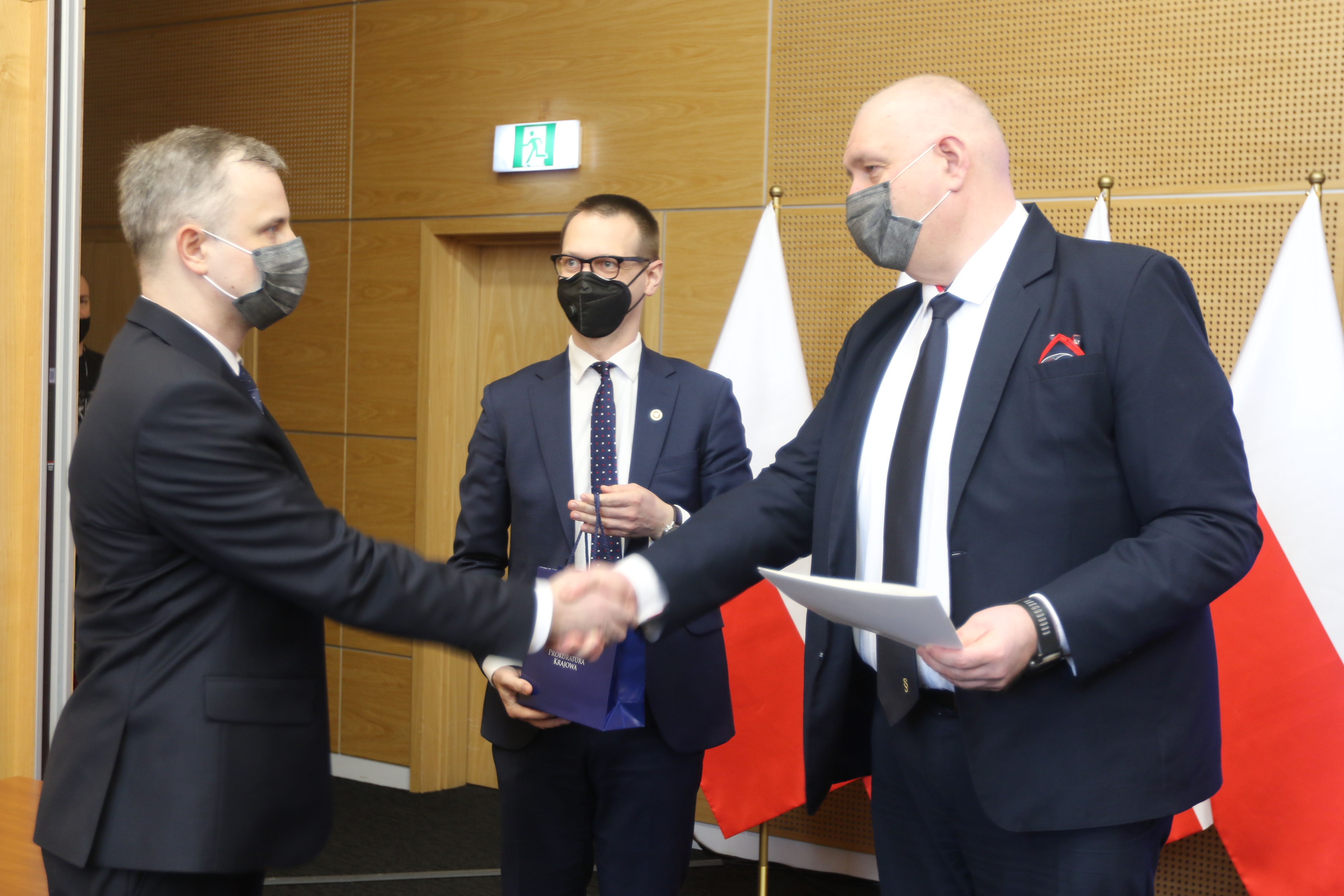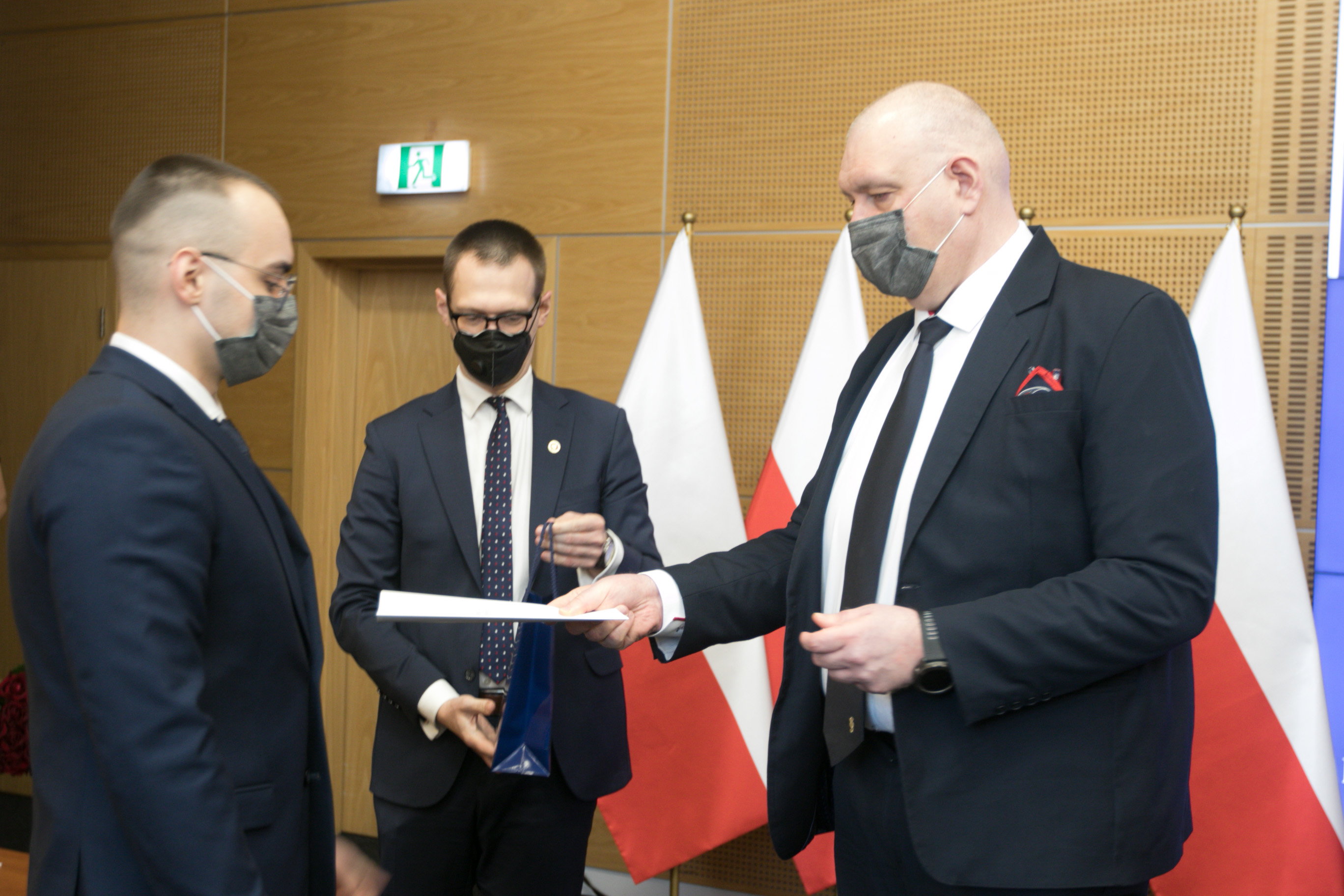 W dniu 16 lutego 2022 r. Pan Bogdan Święczkowski, w imieniu własnym oraz wszystkich pracowników Prokuratury Krajowej, podziękował trzem pracownikom Biura Informatyzacji i Analiz Prokuratury Krajowej oraz funkcjonariuszowi Służby Więziennej za mężną i odważną postawę w czasie niebezpiecznego zdarzenia, które miało miejsce w rejonie budynku Prokuratury Krajowej w dniu 27 stycznia 2022 r.