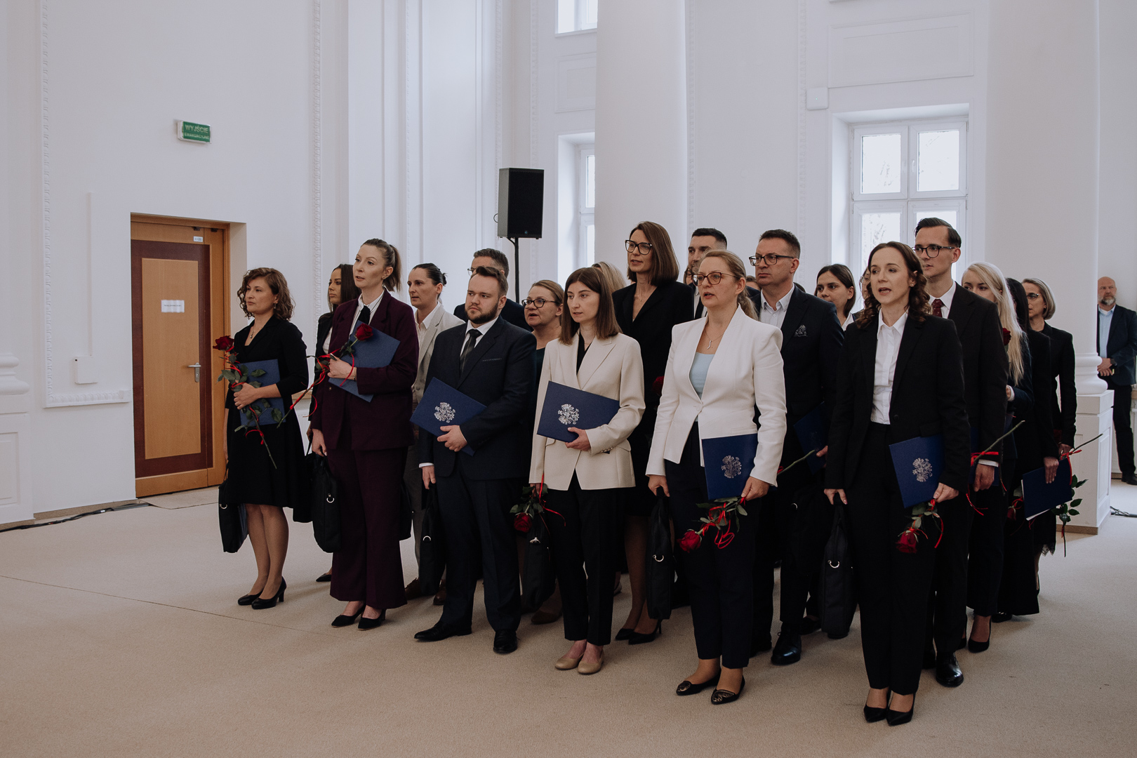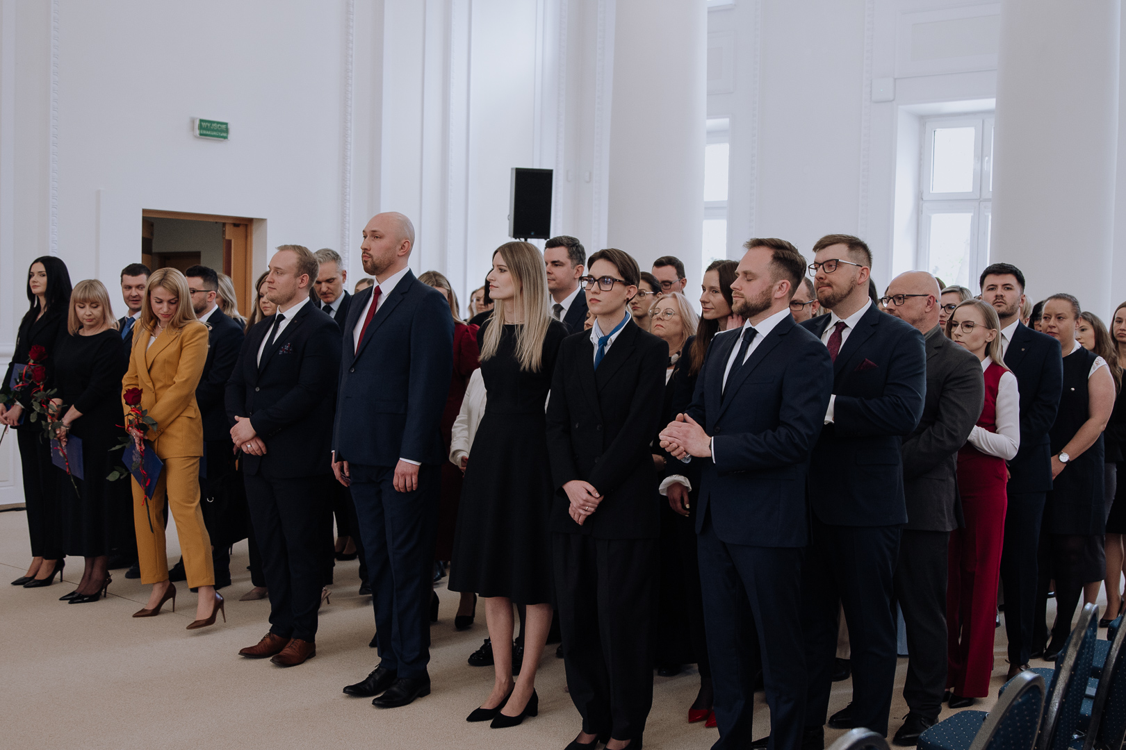 Gratulacje skierował także do asystentów, urzędników oraz pracowników prokuratury, podkreślając ich kluczową rolę w zapewnieniu prawidłowego funkcjonowania instytucji. Zaznaczył, że ich praca, często wykonywana pod presją czasu i kosztem życia prywatnego, zasługuje na najwyższe uznanie.