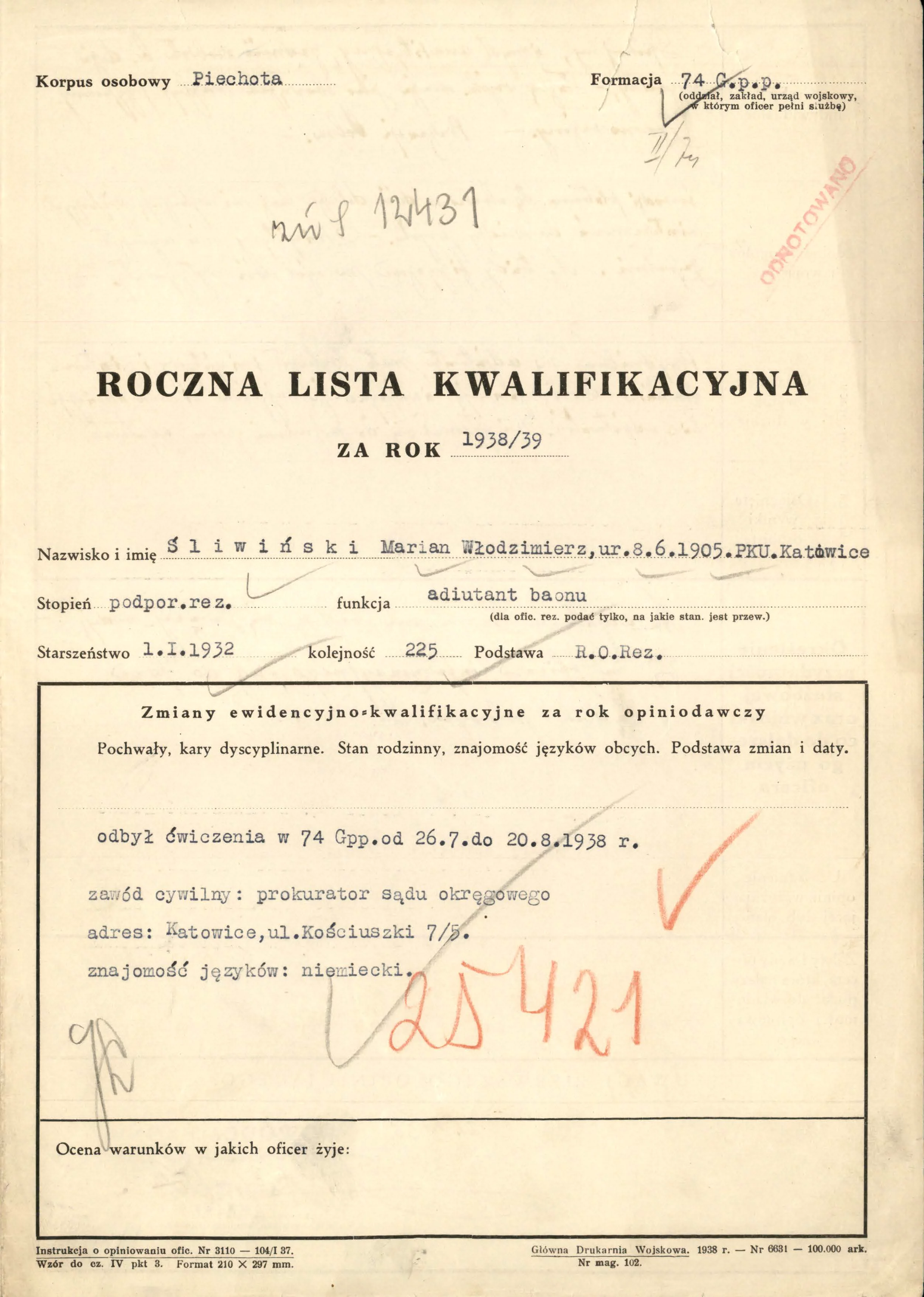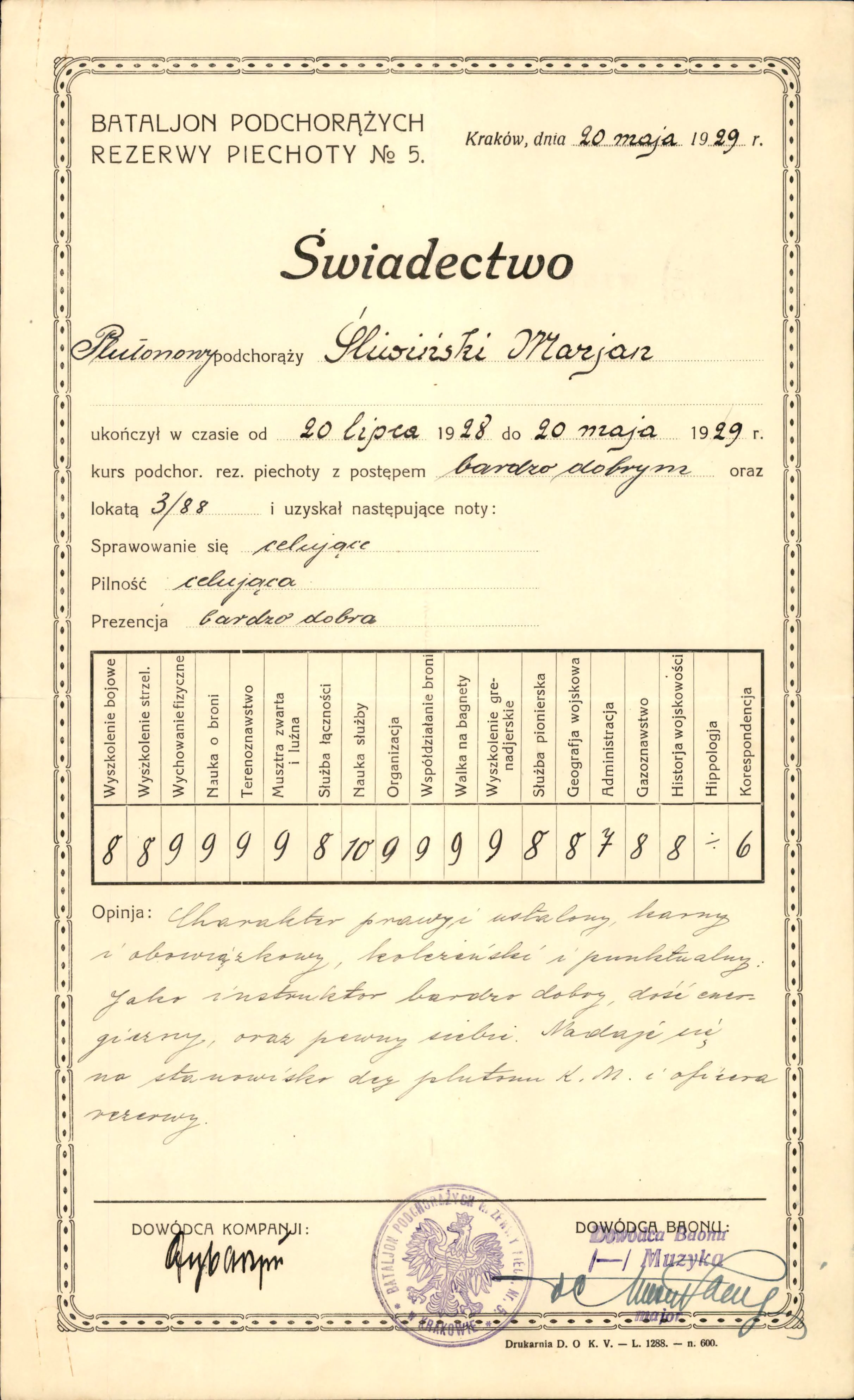 Por. piech. rez. Marian Włodzimierz ŚLIWIŃSKI, syn Ludwika i Heleny z domu Schiller, urodził się 8 czerwca 1905 r. w Krakowie.