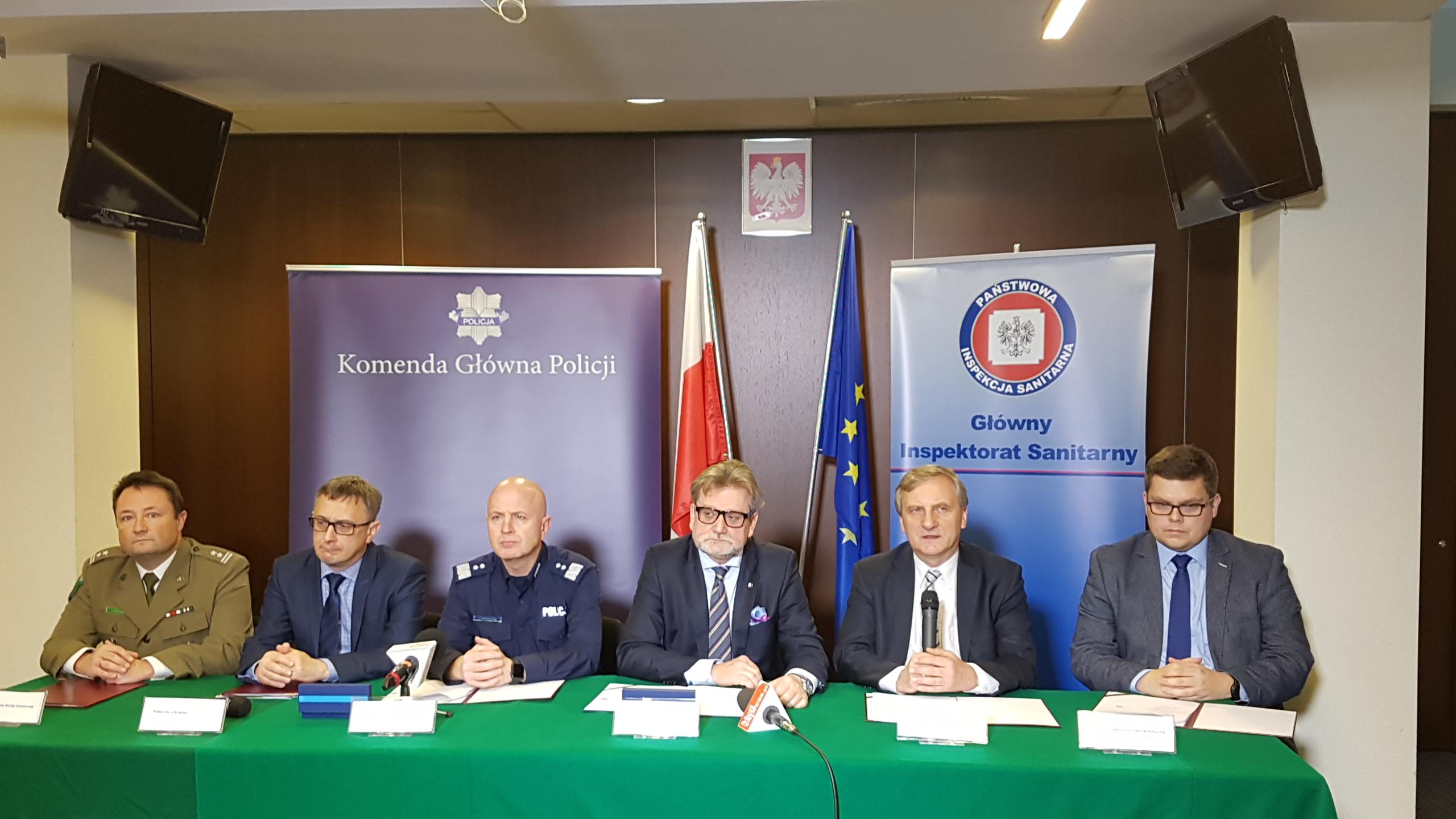 Wczoraj (26 listopada 2018 roku) odbył się briefing prasowy sygnatariuszy Porozumienia pomiędzy Prokuratorem Krajowym, Głównym Inspektorem Sanitarnym, Komendantem Głównym Policji, Szefem Krajowej Administracji Skarbowej, Komendantem Głównym Straży Granicznej i Głównym Inspektorem Farmaceutycznym o współpracy w celu sprawnego i skutecznego wykonywania zadań w zakresie przeciwdziałania wprowadzaniu do obrotu na terytorium Rzeczypospolitej Polskiej środków zastępczych i nowych substancji psychoaktywnych.