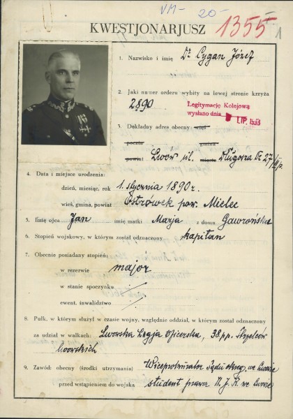 Ppłk Józef CYGAN, syn Jana i Marii z Gawronów (bądź Gawrońskich), urodził się 1 stycznia 1890 r. w Ostrówku, w powiecie mieleckim, w województwie krakowskim. Egzamin dojrzałości złożył w gimnazjum w Dębicy. Ukończył studia prawnicze na Uniwersytecie Jana Kazimierza we Lwowie. Żonaty z Julią Jezierską, z którą miał troje dzieci: Marię, Zbigniewa i Wiesława. Władał językami obcymi: niemieckim, włoskim i serbsko-kroackim.