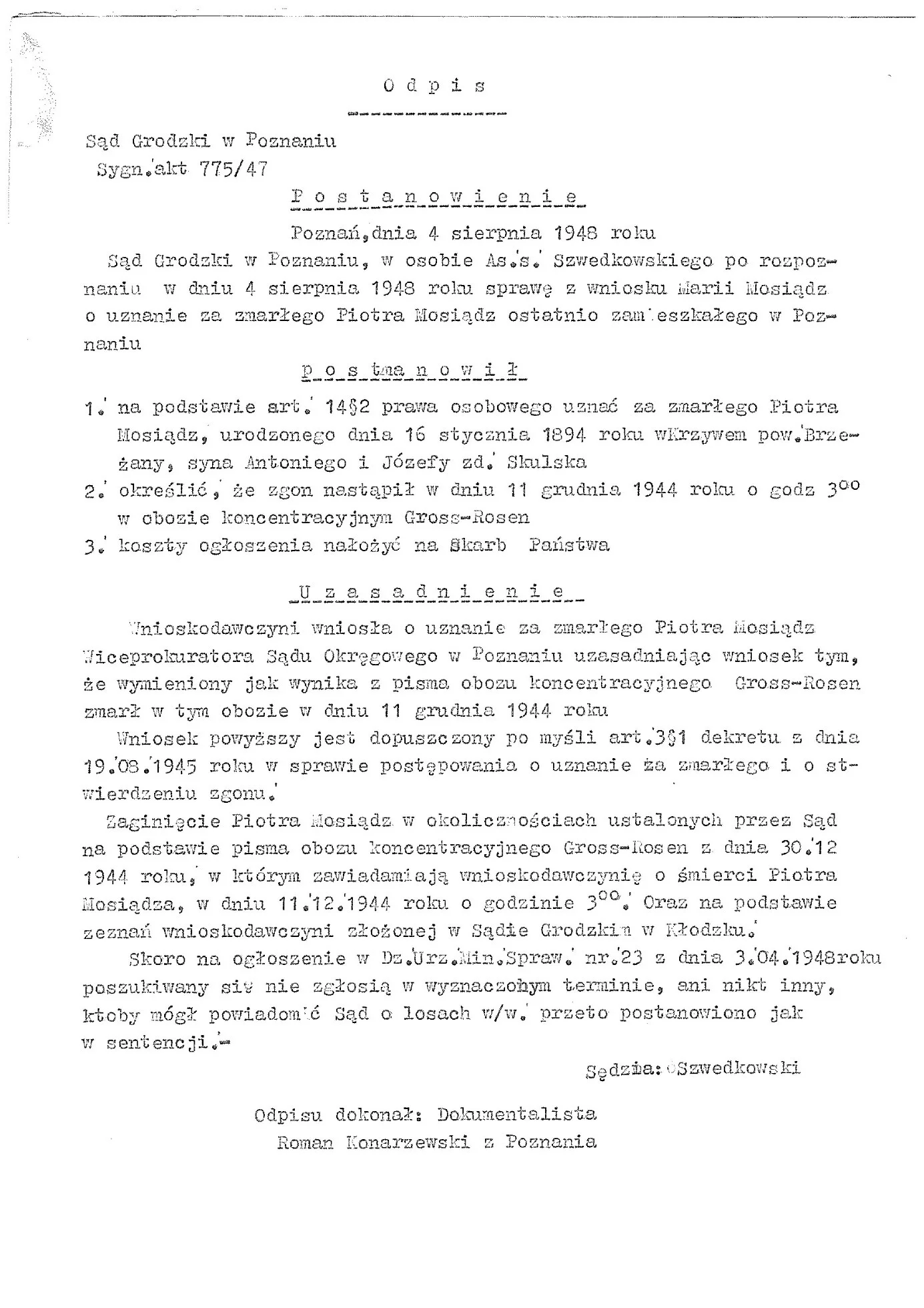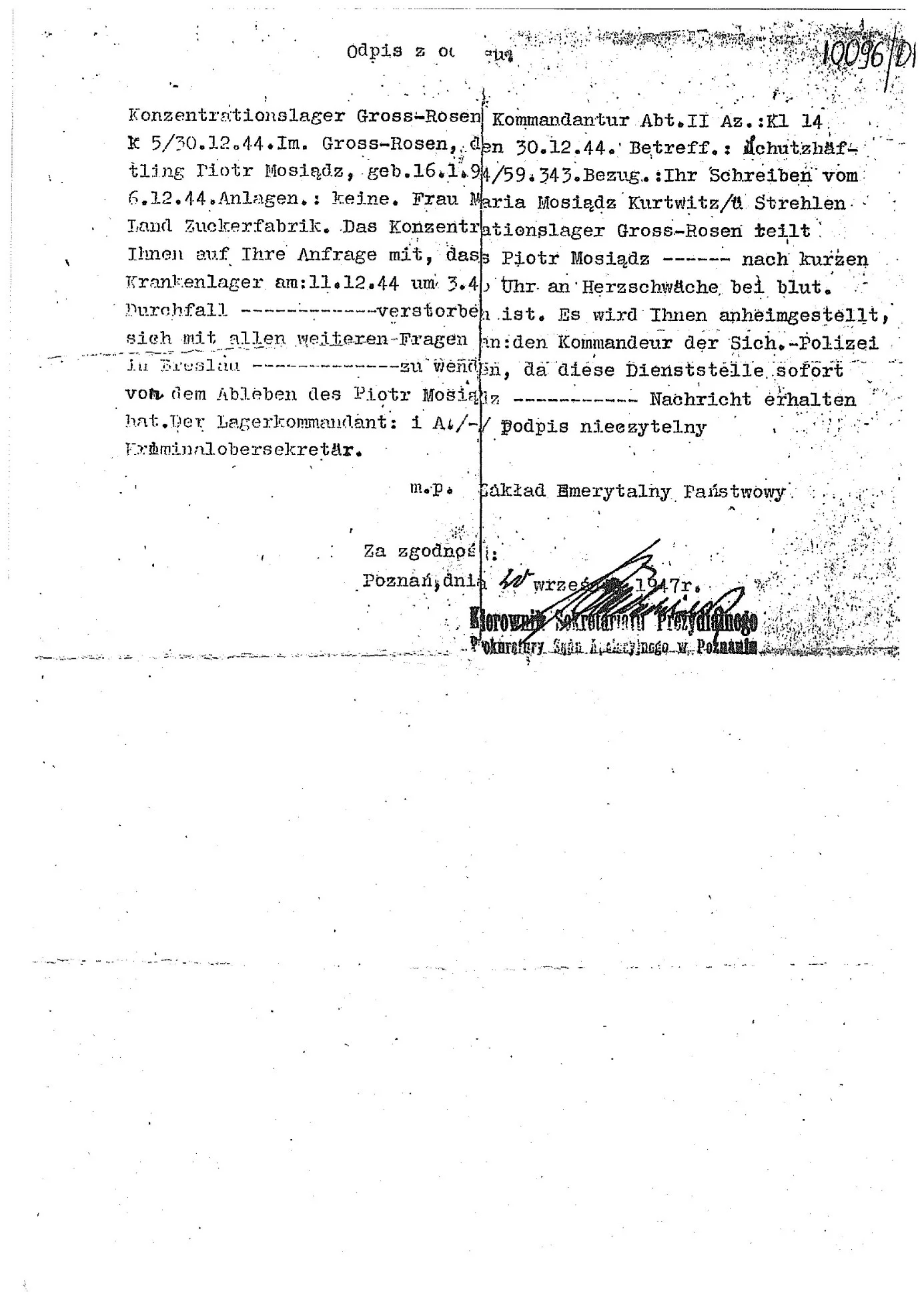 a następnie skierowany do KL Gross-Rosen, gdzie odnotowany został pod numerem 59373. Zmarł w obozie 11 grudnia 1944 r.