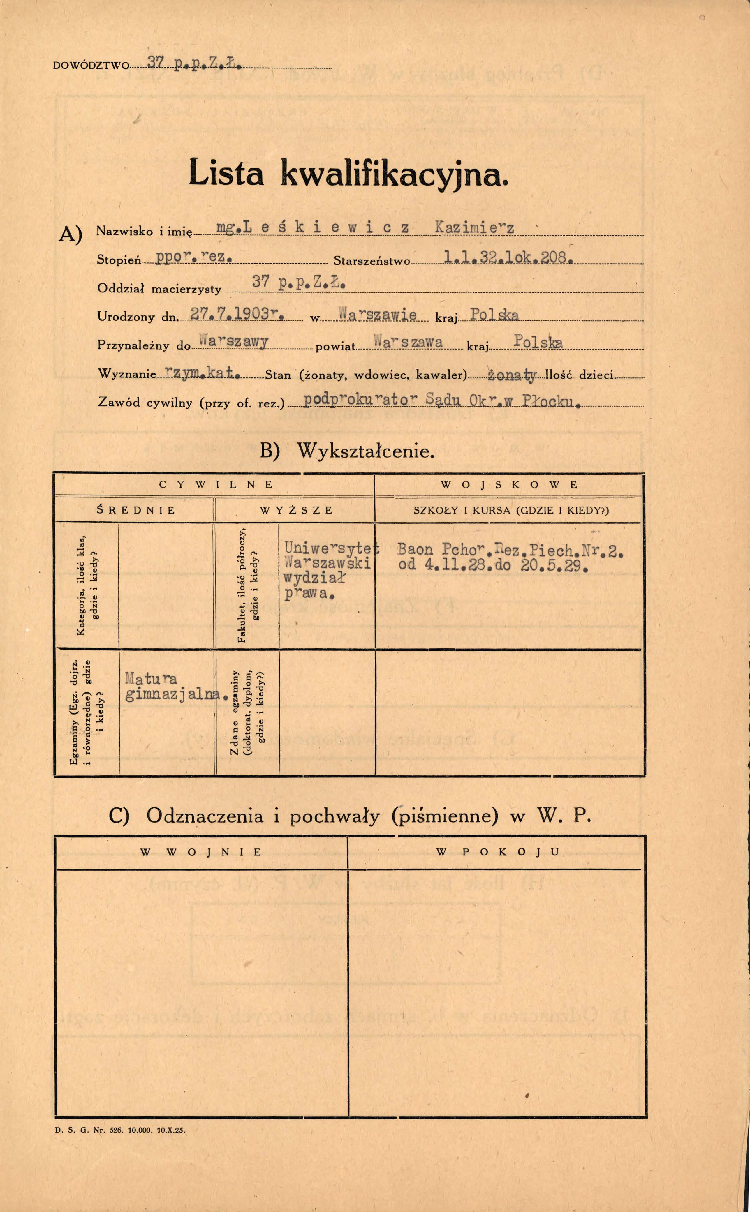 Ppor. rez. Kazimierz LEŚKIEWICZ