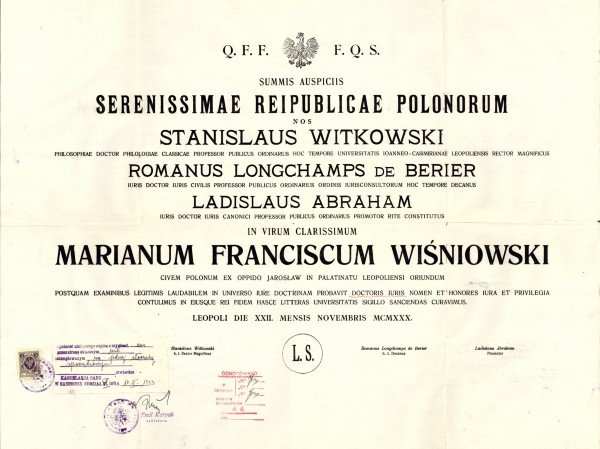 Ppor. rez. Marian Franciszek WIŚNIOWSKI, syn Franciszka i Franciszki z domu Kuśmierzów, urodził się 25 marca 1902 r. w Jarosławiu. Członek Polskiej Organizacji Wojskowej.
